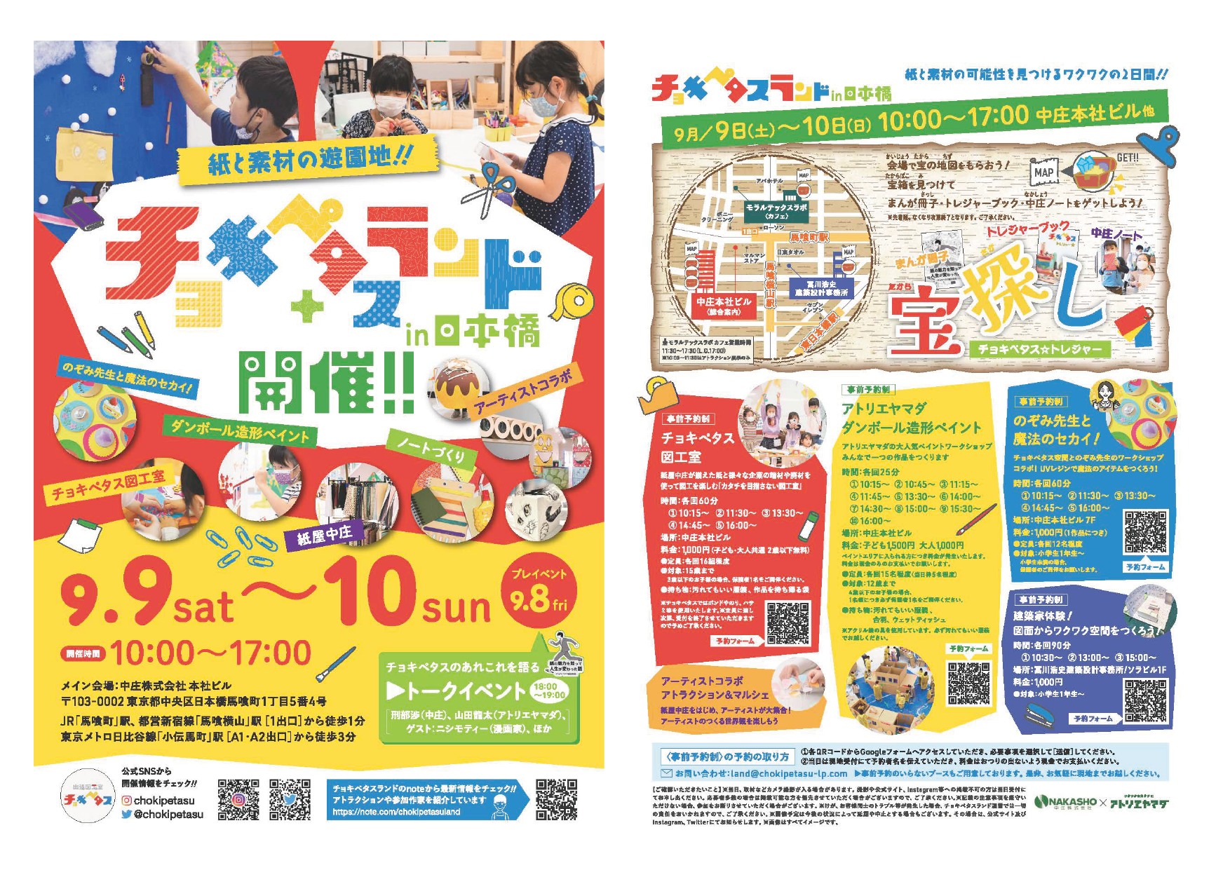 紙と素材の遊園地「チョキペタスランドin日本橋」9月9日(土)10日(日)、中庄ビル・日本橋馬喰町で開催!