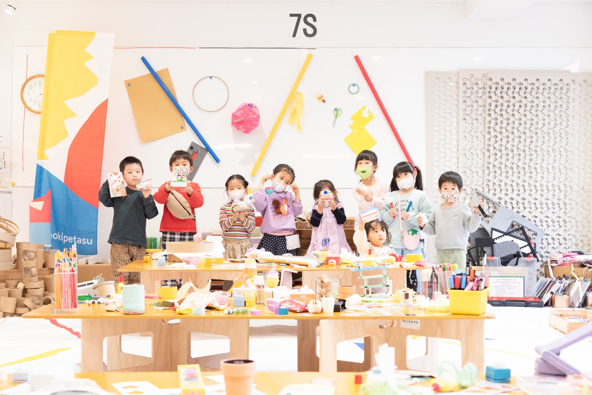 「chokipetasu(チョキペタス)」は、カタチにすることを目指さない図工室。沢山の紙や企業さんのめずらしいカタチの廃材を、カラフルで楽しい道具をつかって、図工・創作を楽しむことができます。手を動かしながら素材を切ったり(チョキ)、貼ったり(ペタ)、そこに自由な発想やアイデアをプラス(タス)することで、ウェブやSNSで調べれば簡単に見つかるような形とは違う、自由でワクワクする「自分だけのカタチ」を作り出します。