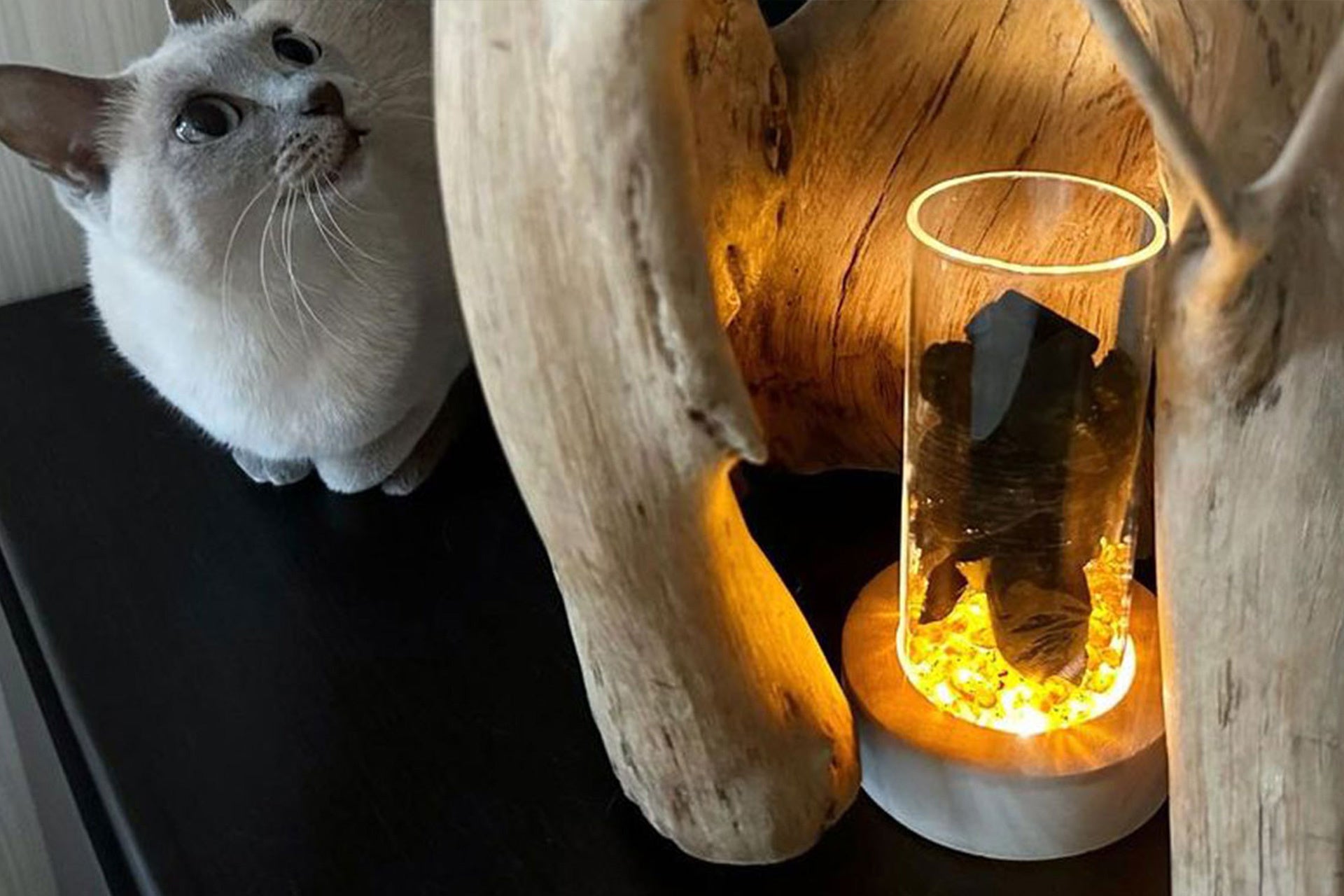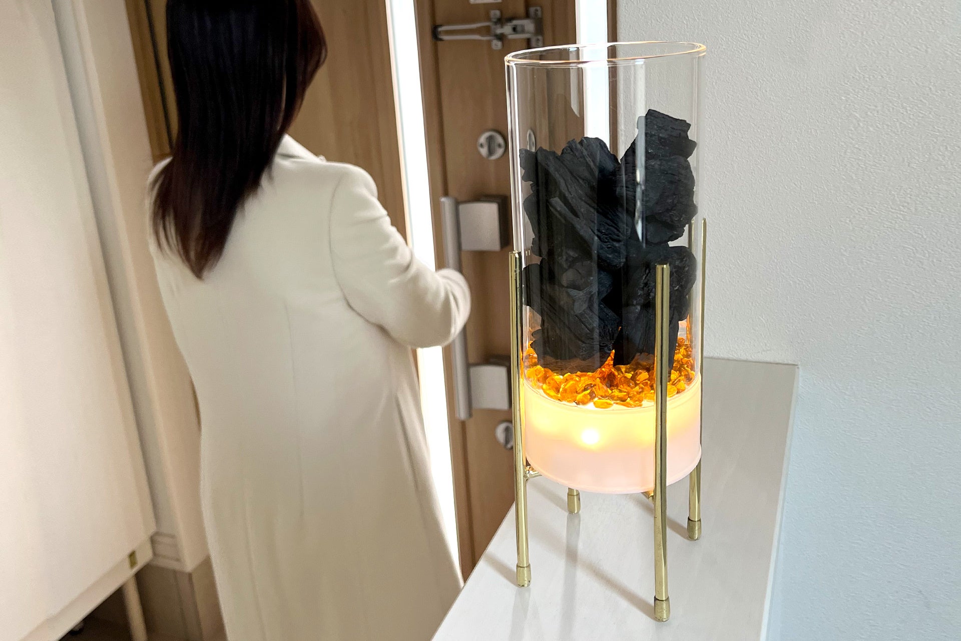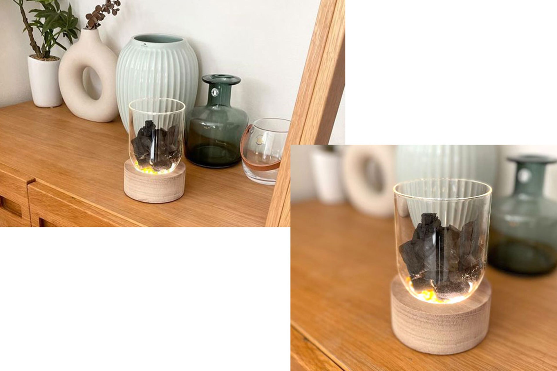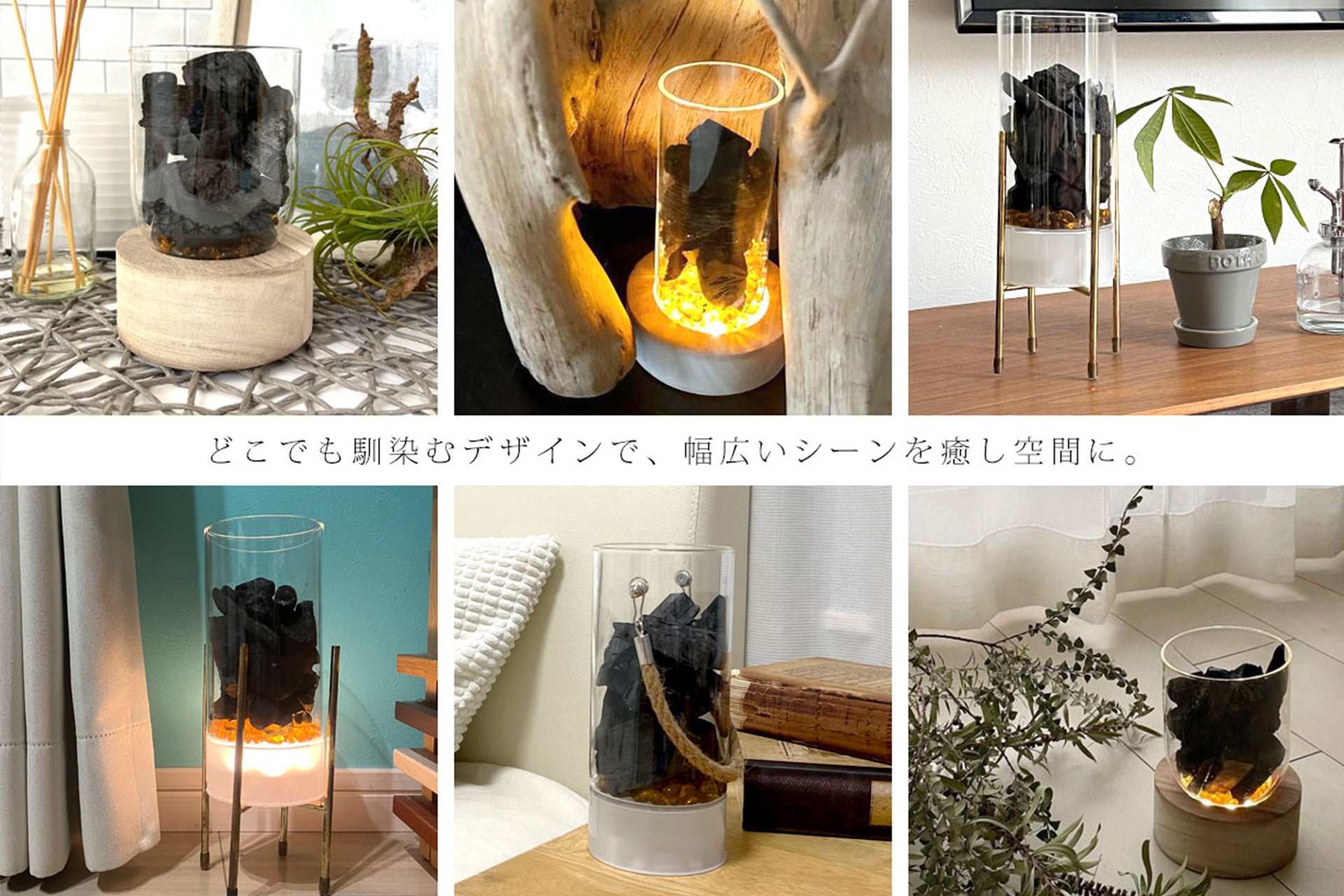 - お子様やペットのいるご家庭でも火を使わずに備長炭の暖かみを室内でも楽しめるインテリアライト。