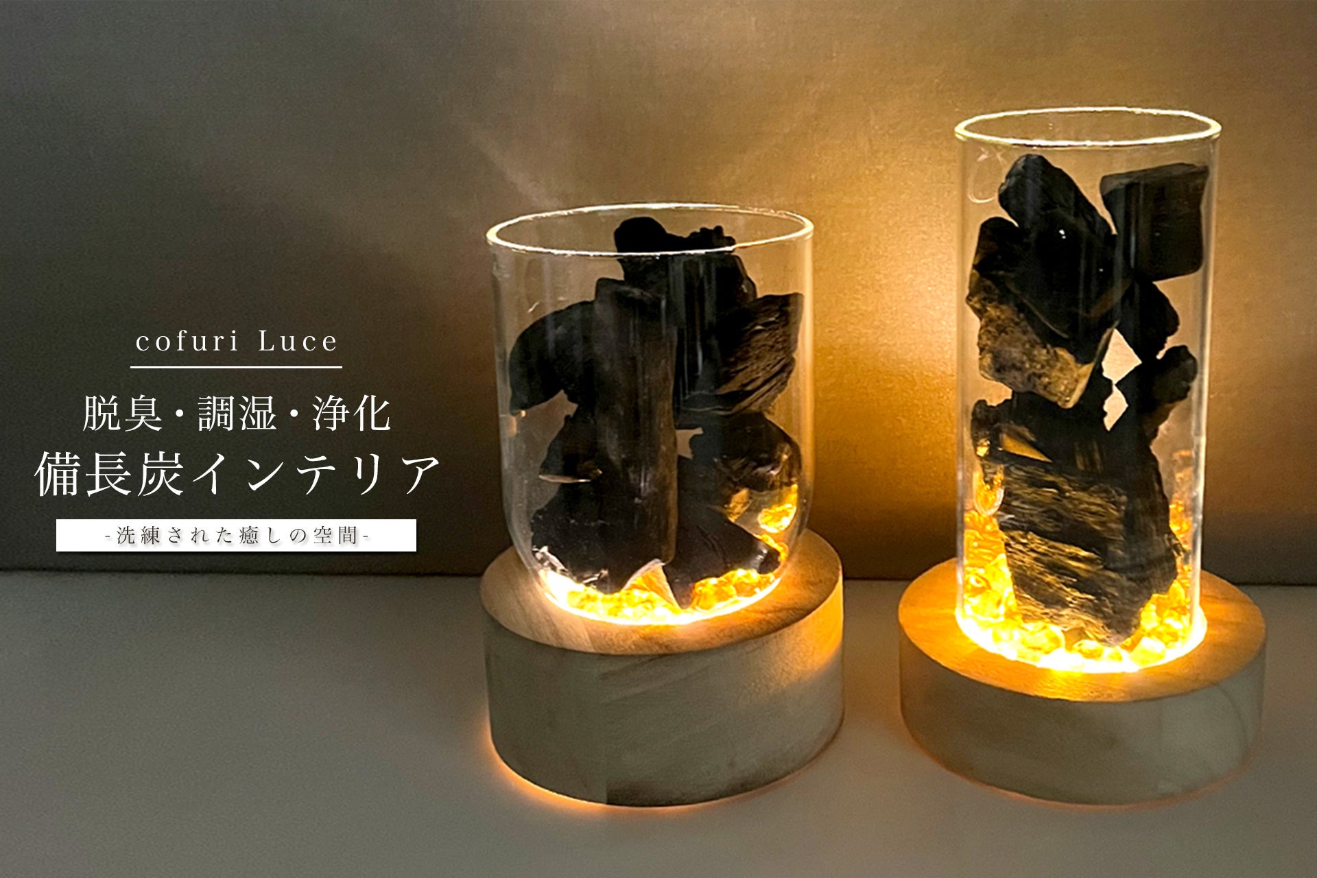 『cofuri Luce(コフリルーチェ)』(販売元:cofuri)は、2023年1月6日正午よりクラウドファンディングMakuakeにて、備長炭と現代的な暖かみのあるLEDの光が灯すインテリアライトの注文受付を開始いたしました。