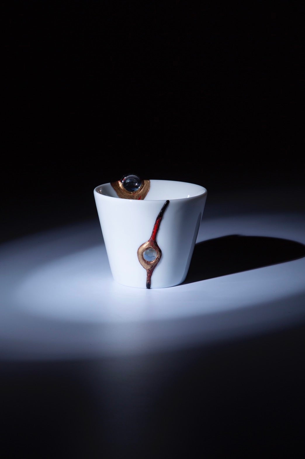 和歌山の根来には「根来塗り」という朱と黒の漆を掛け合わせた伝統の技法があります。GRATITUDE代表でもある、ステンドグラスアーティストひらのまりが出自の地に伝わるその技術にたちまちに魅了され、金継ぎの金を加味して破壊された器を漆で継ぐ「根来継ぎ」として昇華させたのは偶然の巡り合わせだけではない必然の帰結なのかもしれません。