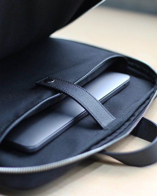 PORTLAのミニマルなビジネスリュックに合わせて必要な荷物を取捨選択することで、整理された思考で仕事に取りかかれます。