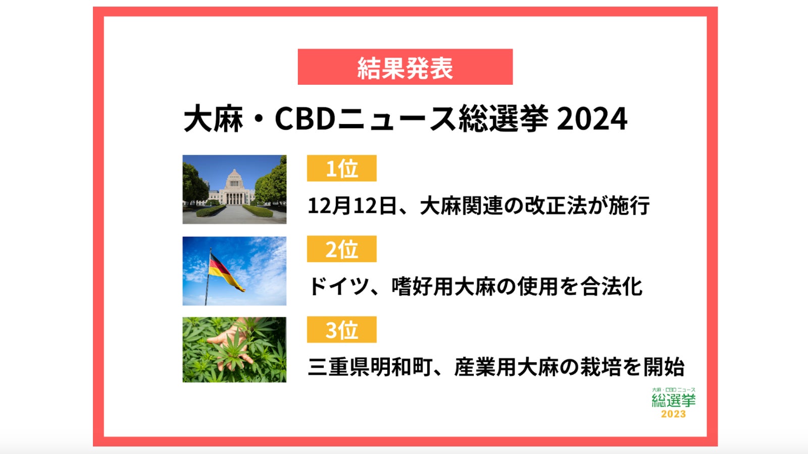 『2024年 大麻・CBDニュース総選挙』の投票結果は、以下の通りです。
