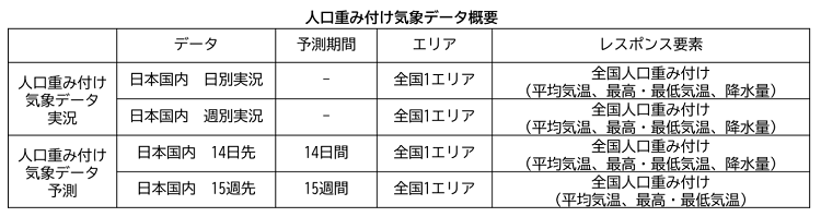 「Weather Data API」にて体感指数データ、人口重み付け気象データの提供開始