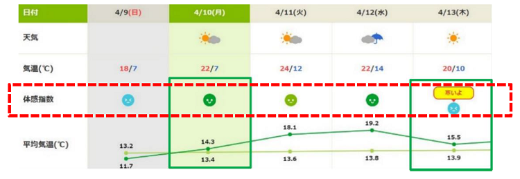 図1:「体感指数データ」の活用例「売りドキ!予報」
