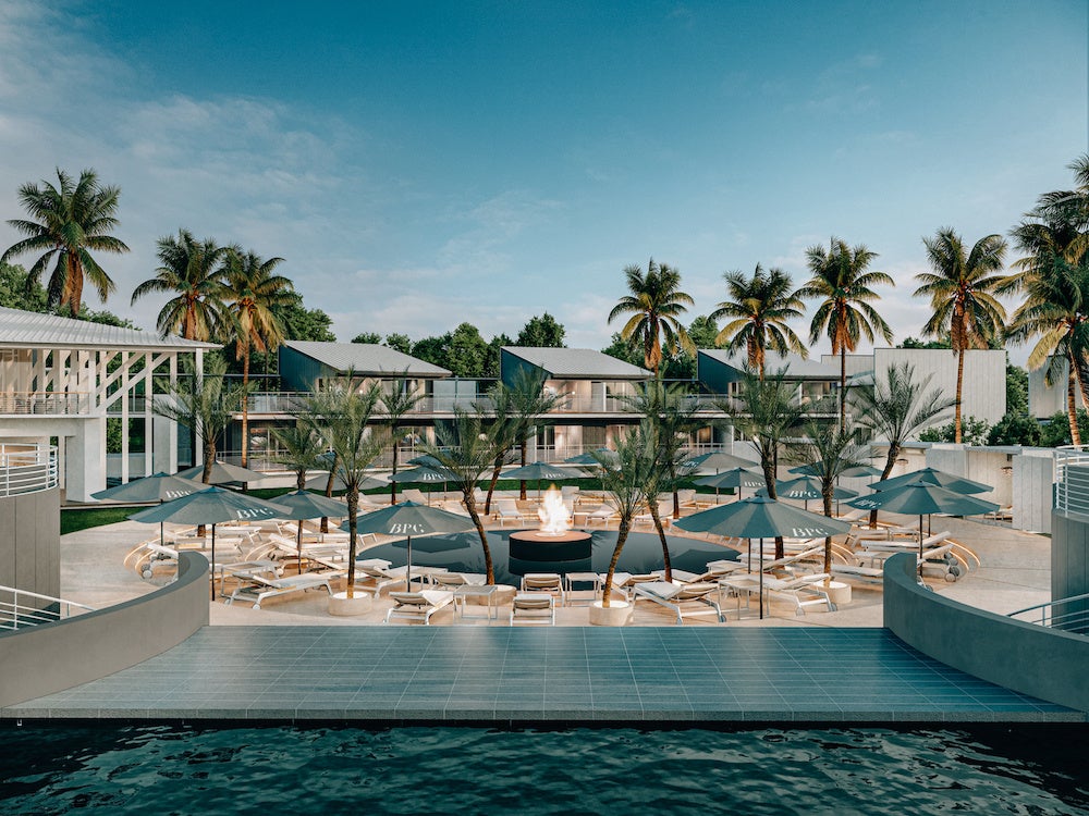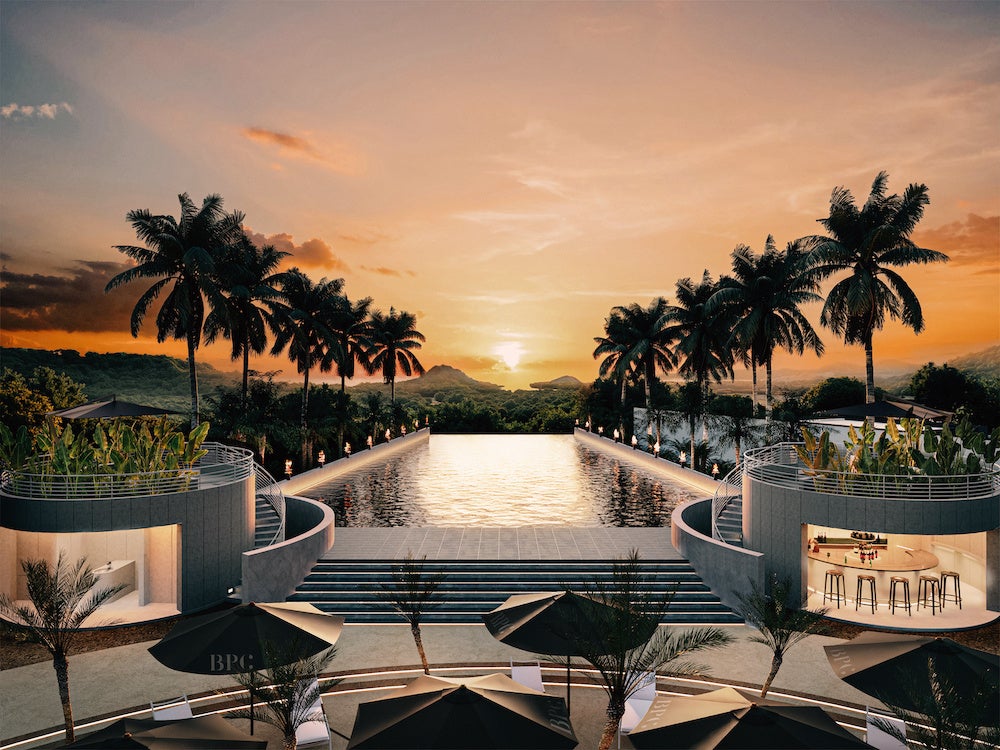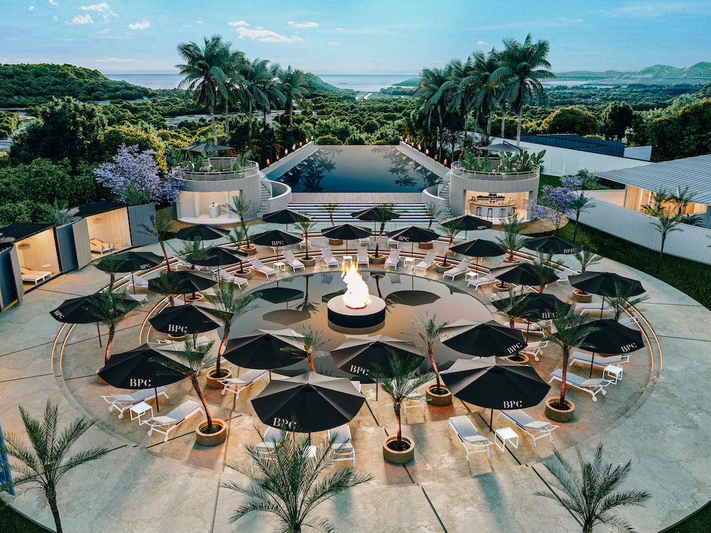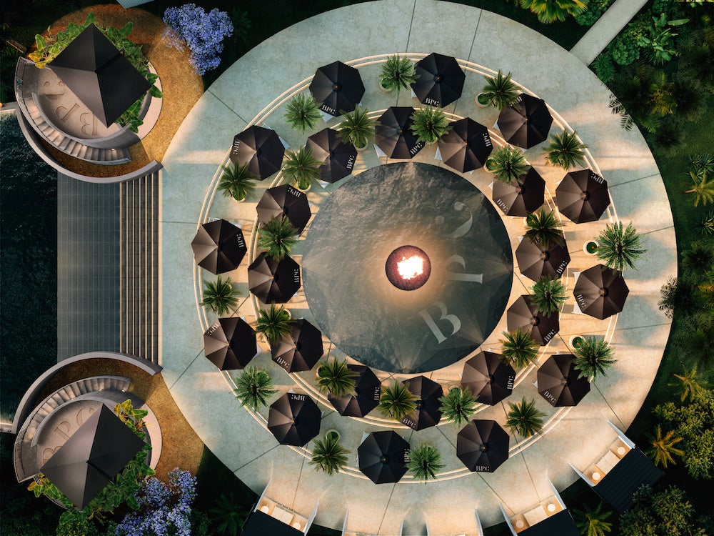 「BPC」の主役は、施設中央に佇む2つのプール。海を見下ろす全長40mの「BLACK POOL」には、風に揺られるパームツリー、一日を通して姿を変える空、プールに灯される炎が鏡のように映し出され、幻想的な世界を演出します。炎を囲う「SIGNATURE POOL」には、パラソルやプールベッド、ガゼボが配置され、読書をしたり、PCを広げて仕事をしたり、併設のプールサイドバーでドリンクや食事を楽しんだり、ゲスト一人ひとりが思い思いの時間を過ごせます。