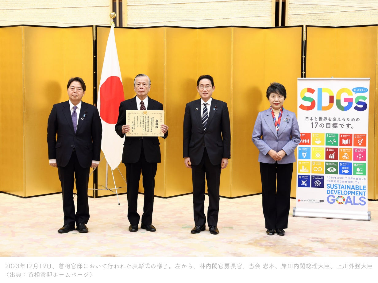 2023年12月19日に首相官邸にて、SDGs推進本部長である岸田内閣総理大臣、林官房長官、上川外務大臣らの出席のもと受賞式が行われ、賞状とトロフィーが授与されました。