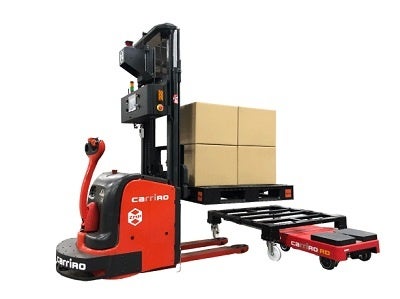 工場・倉庫での自動搬送を実現する、無人フォークリフト(CarriRo🄬 Fork)を、展示いたします。