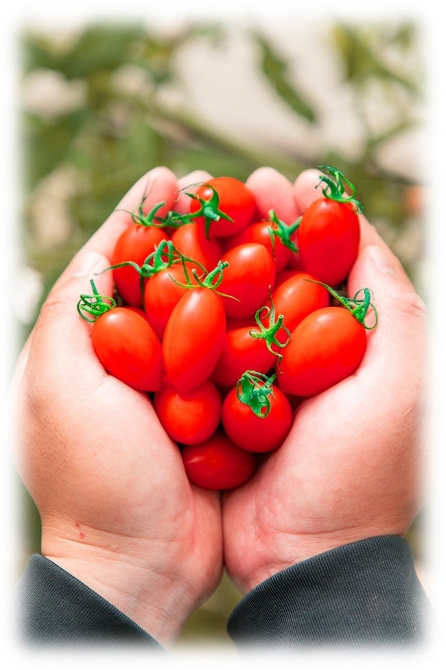 化学化学肥料を一切使用せず、蟹殻や牡蠣殻など自然のものだけで作った自社開発の土“オスミックソイル”。その土で育てた、旨味と甘味がギュッと詰まった高糖度のフルーツミニトマトです。収穫したすべてのミニトマトを糖度選別機* にかけて、一粒一粒、光センサーで糖度の選別をし、糖度別に分け、デパート、スーパー、通販サイトにて販売しています。