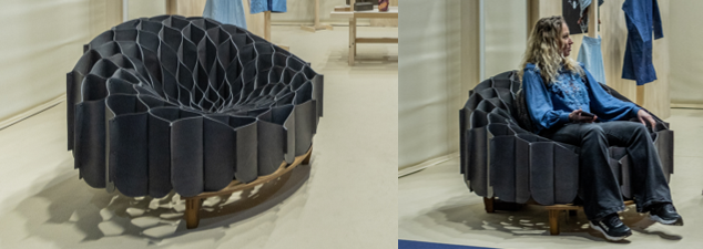 デザインコンセプトは「野に咲く花」であり、どのような場所であってもそこから快適な着地点を探し、根付き、花を咲かせる自然の営みを、「円」のデザインで表現。この表現と「食べるだけで終わりではなく、生き物の恵みを活かすこと」をコンセプトとした神戸レザーとが見事に調和した斬新な椅子となっています。