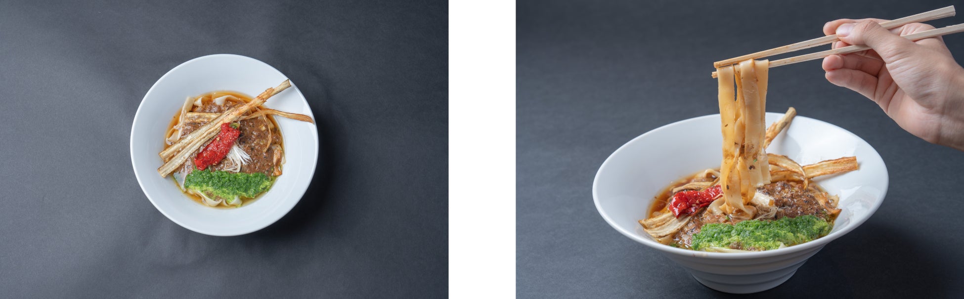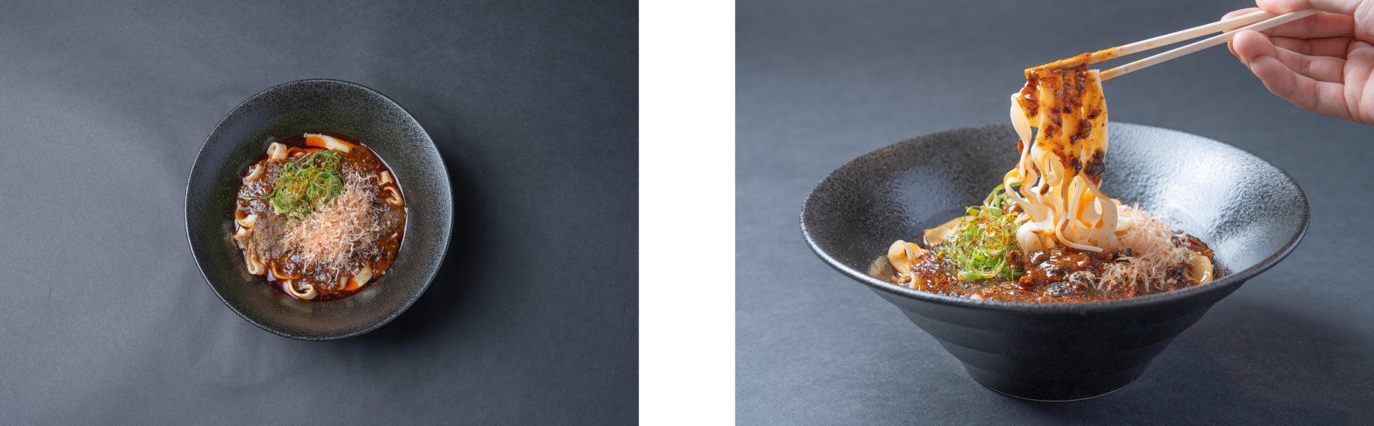 甘さとコクがある肉味噌、深みのある豆豉、こだわり抜いた自家製辣油をふんだんに使用し辛いだけでなく、花椒の爽やかで華やかな香りと痺れを感じる餡。麺と絡みやすいきしめんと京風の出汁を使用しています。