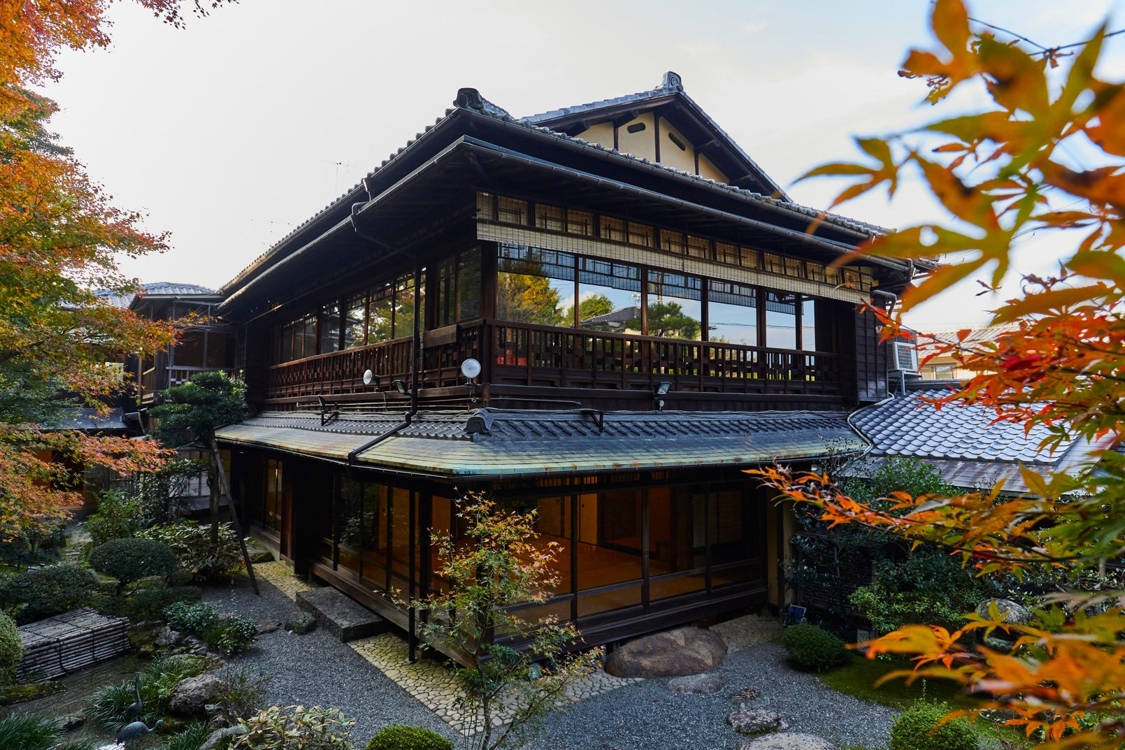 青蓮院と地続きの粟田山の山裾に420坪の敷地を誇る山荘は昭和12年に西陣の織元の別荘として建てられました。数寄屋造りの建物と270坪に及ぶ日本庭園が広がります。