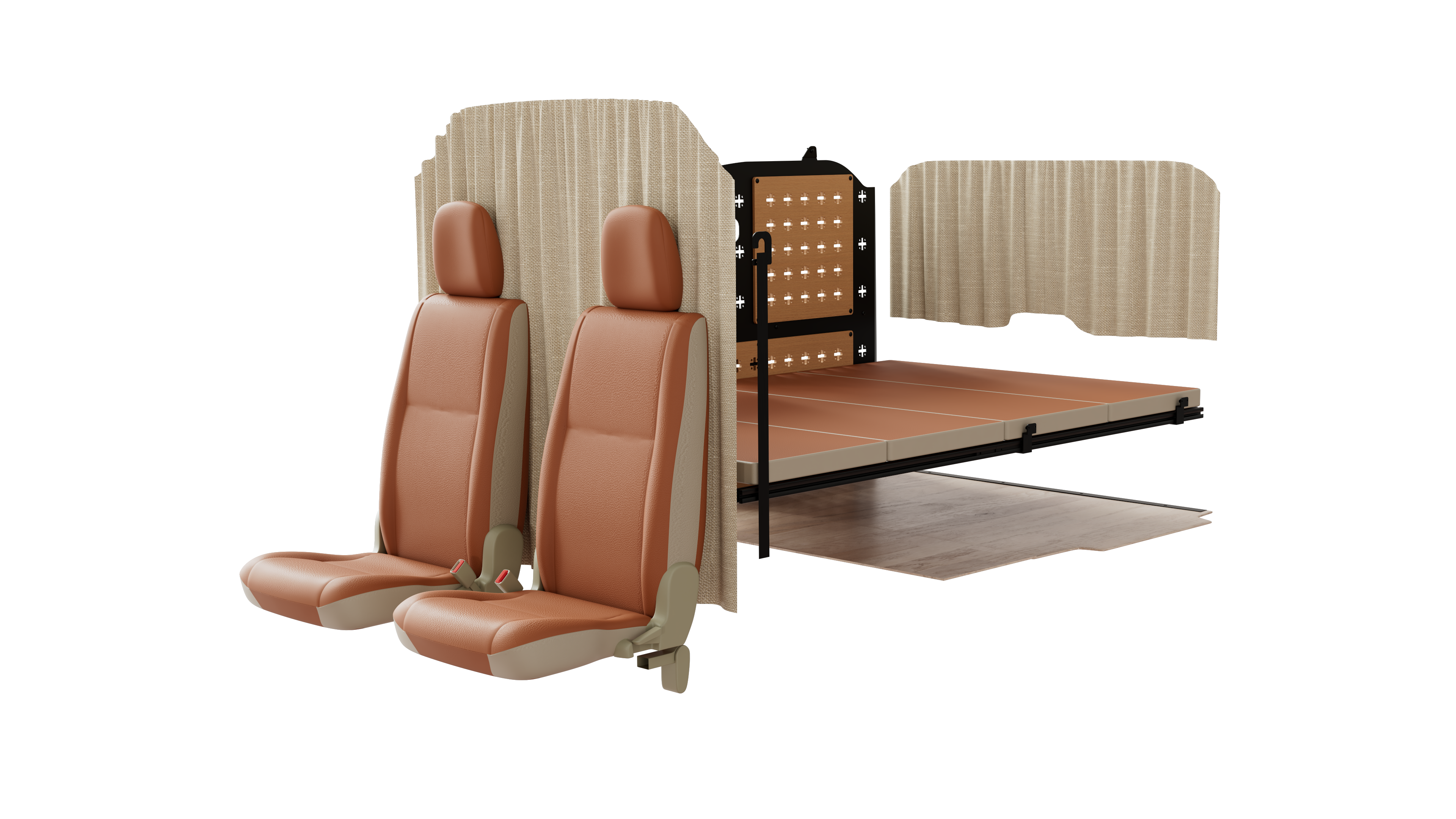 独自開発製品として、キャンピングカー業界をはじめとした多くの企業に採用されているマルチアクションシートや、車内空間を縦方向に拡張し、立ち上がり空間や就寝スペースを確保できるポップアップルーフ、その他多くのオリジナルブランド製品を展開しています。
