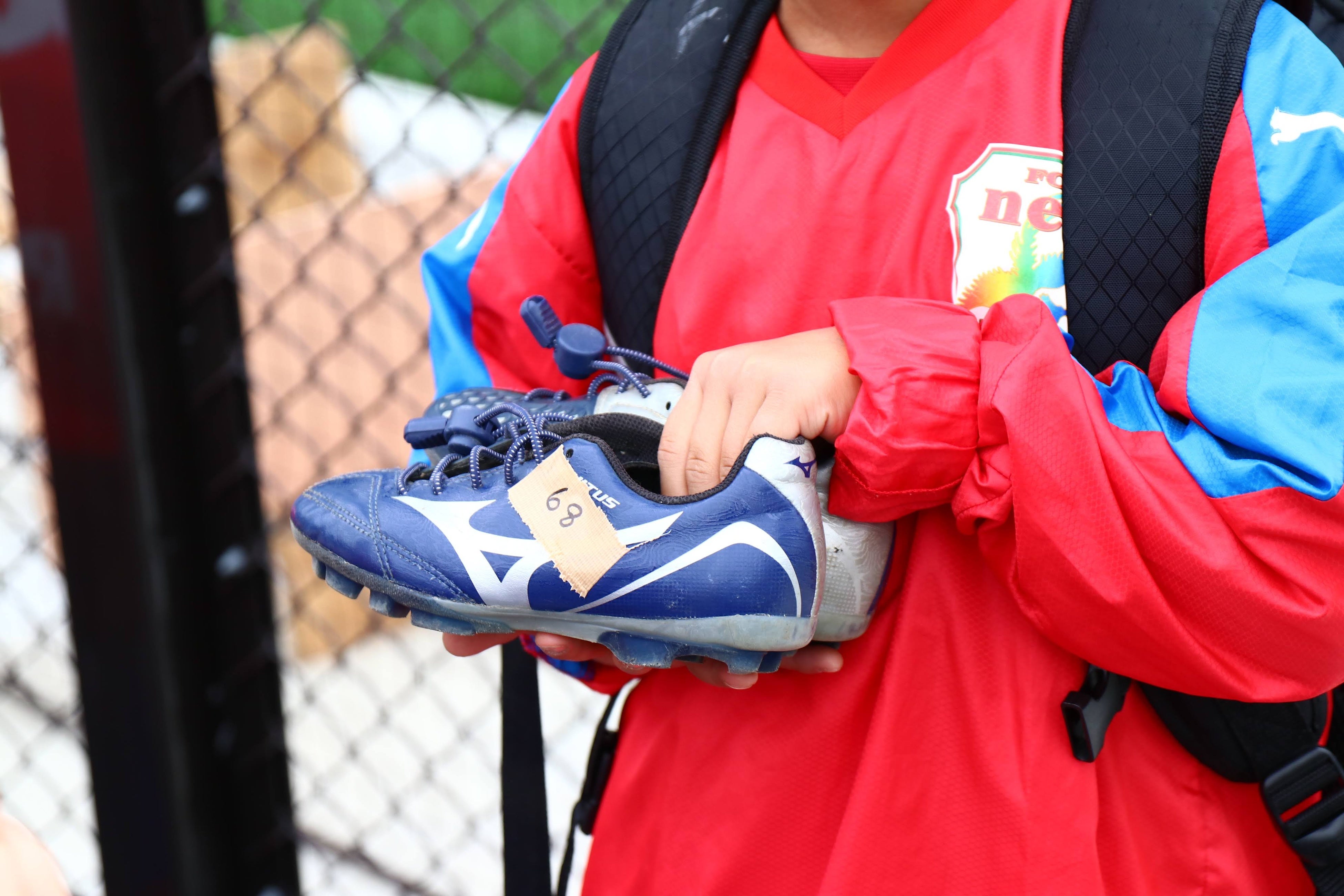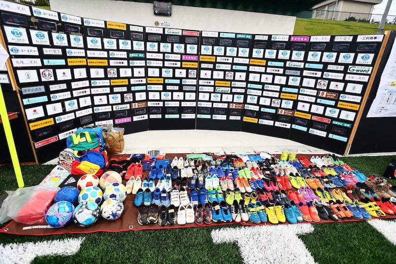 参加費の代わりとなる参加条件は、1人1足の自分のシューズの寄付で、サッカーをきっかけに社会に貢献することを体感してもらいます。
