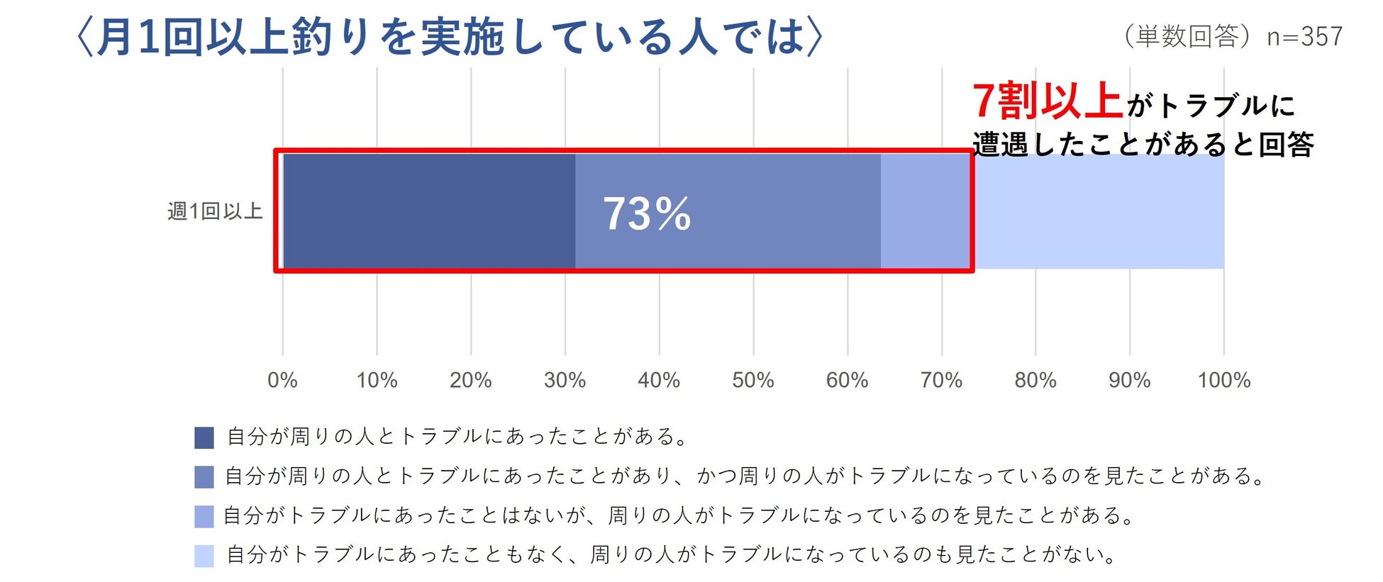 ■釣りを週一回以上実施している人の7割以上がトラブルに遭遇した経験がある