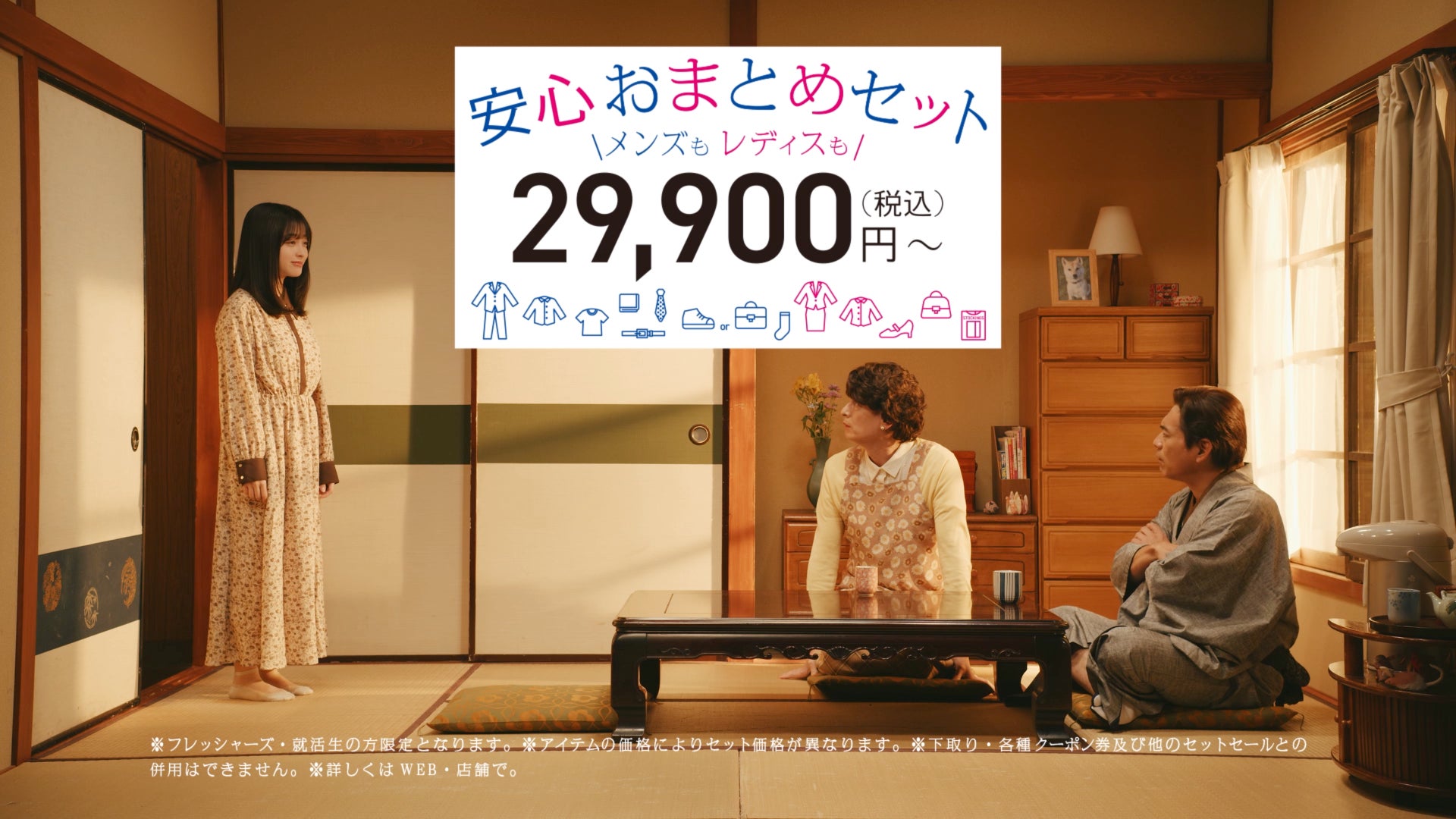 橋本環奈さんと博多華丸・大吉さんをフレッシャーズCMに起用 洋服の青山 新CM『安心おまとめセット篇』を2月4日から全国放送