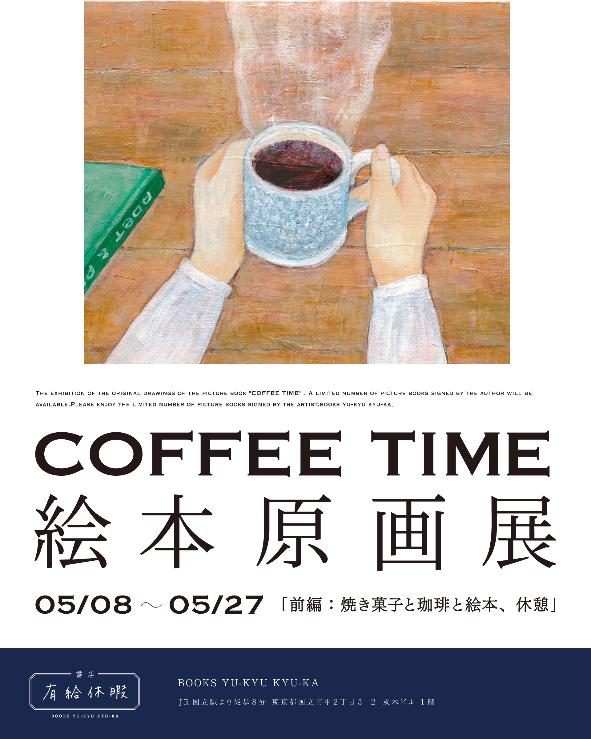 「書店 有給休暇」では、2018年に東京都目黒区にあるニジノ絵本屋(代表:いしいあや)から出版された絵本『COFFEE TIME -珈琲とめぐる毎日-』の原画展を開催いたします。