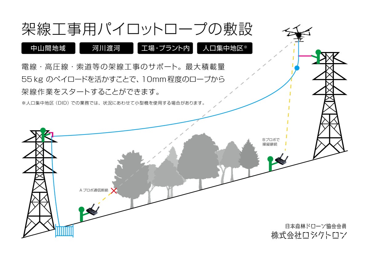 事業内容 大型ドローンによる資材運搬/架線工事サポート/DIPSコンサルティング