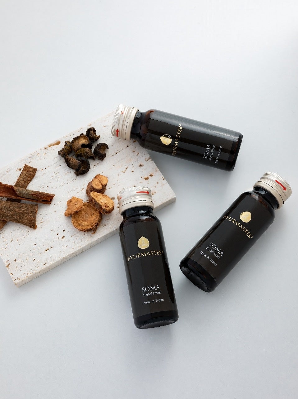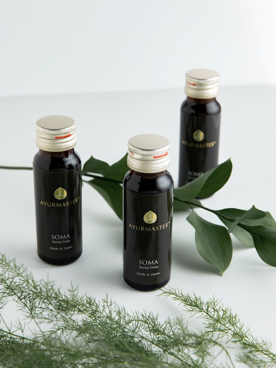 「ソーマ」ハーバルドリンクは、アーユルヴェーダの伝統ハーブ40 種類を最適にブレンドした総合健康飲料として、日常に取り入れやすいかたちでAYURMASTERブランドから誕生しました。