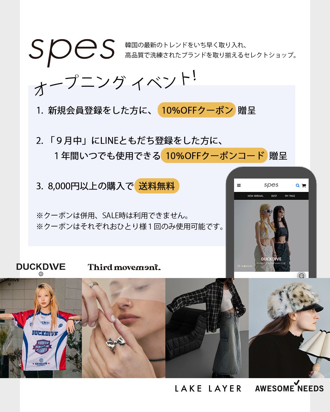 韓国で人気のファッションブランドを取り扱うオンラインセレクトショップ、SPES(スペース)がオープン