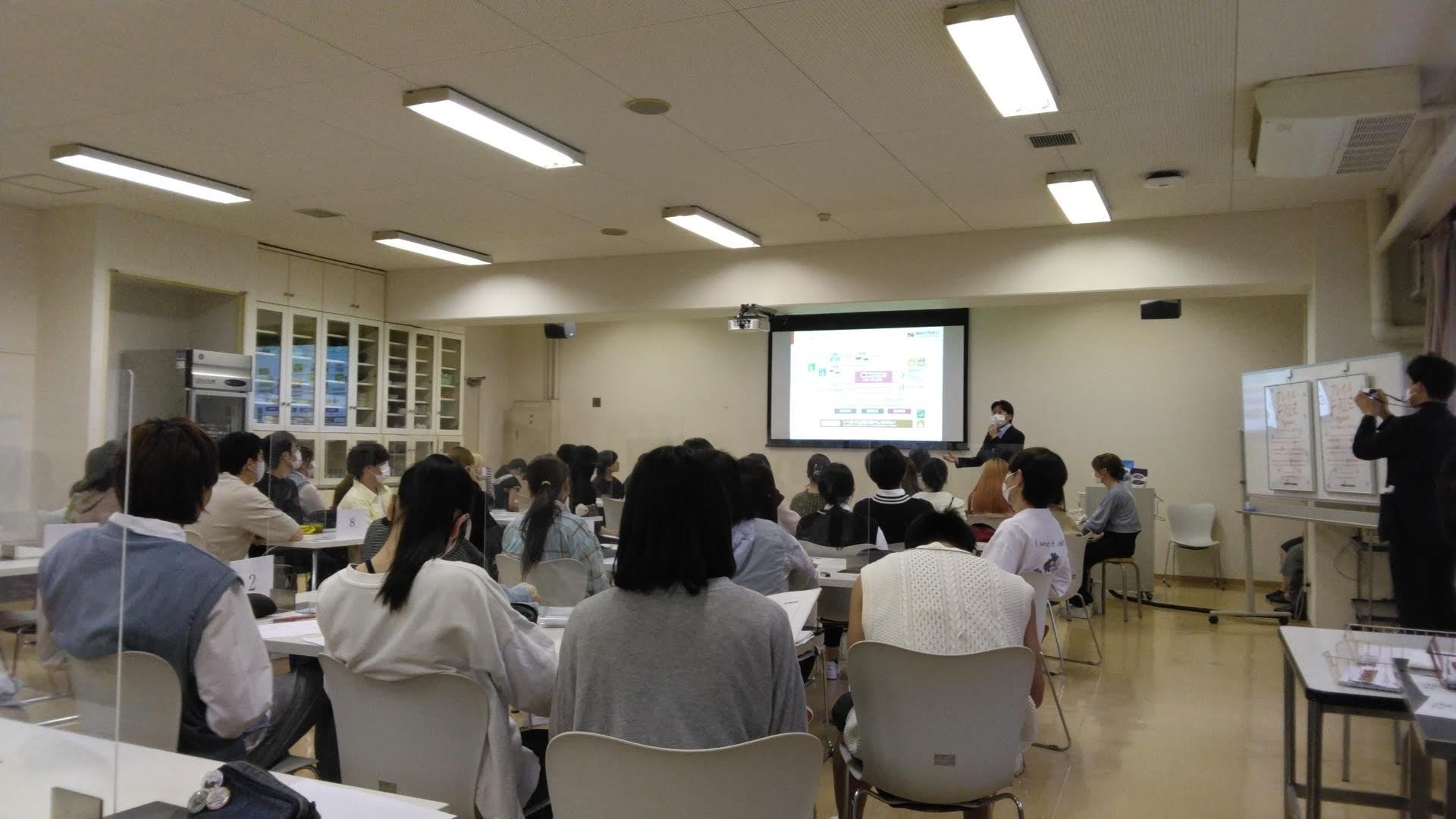 発達栄養学科の1年生50人と、ゼミに所属する3・4年生30人の合計80人が、6月8日の授業に出席しました。この学科の学生達のうち98%が管理栄養士を目指しており、卒業後は病院、総合給食センター、老人ケア施設などでの就業を予定されています。