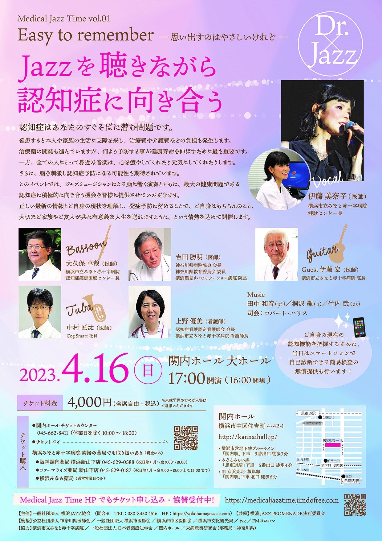 一般社団法人横浜ジャズ協会は、4月16日(日)、横浜・関内ホールにてJazzを聴きながら認知症に向き合うコンサートを開催します。