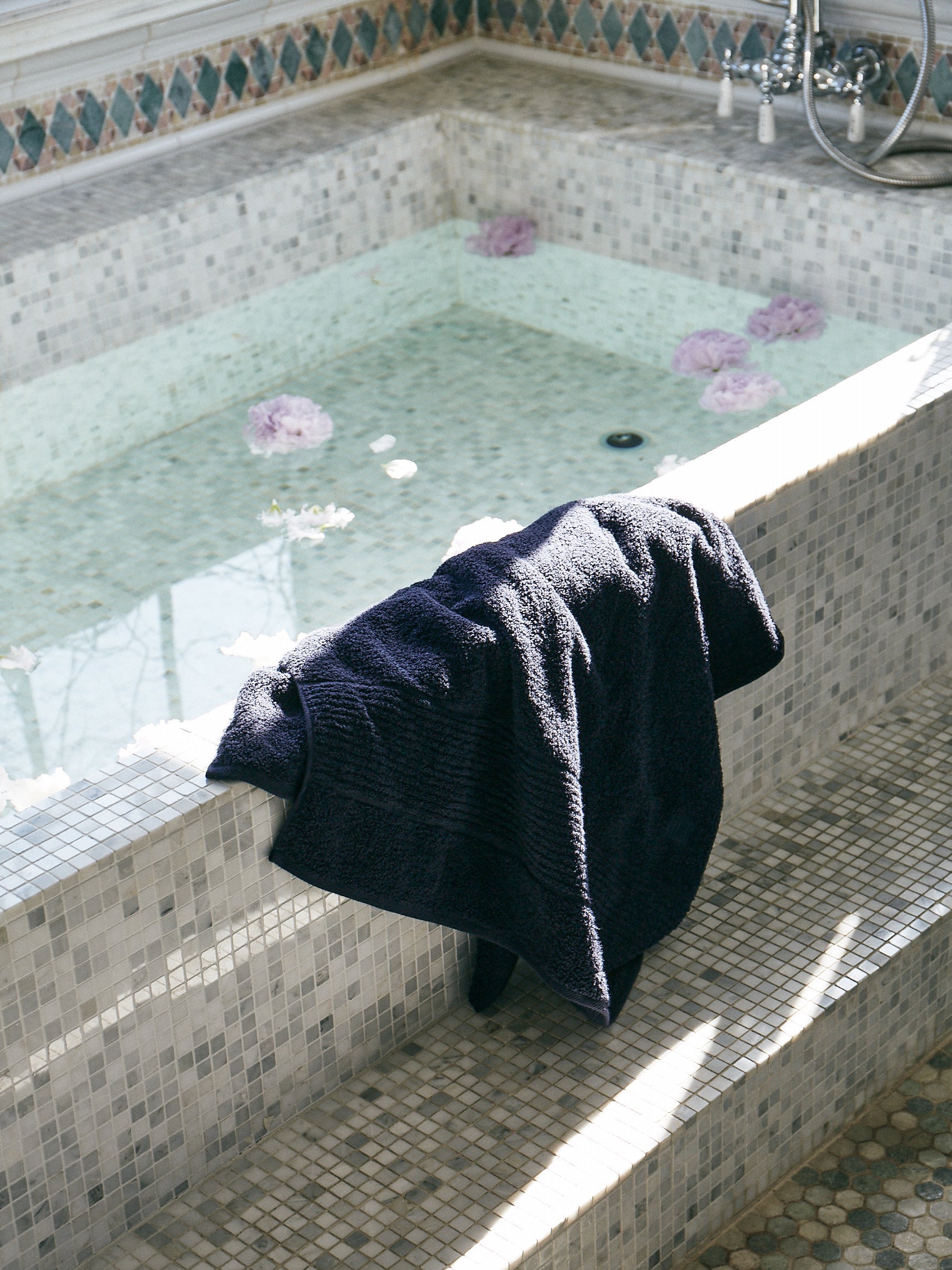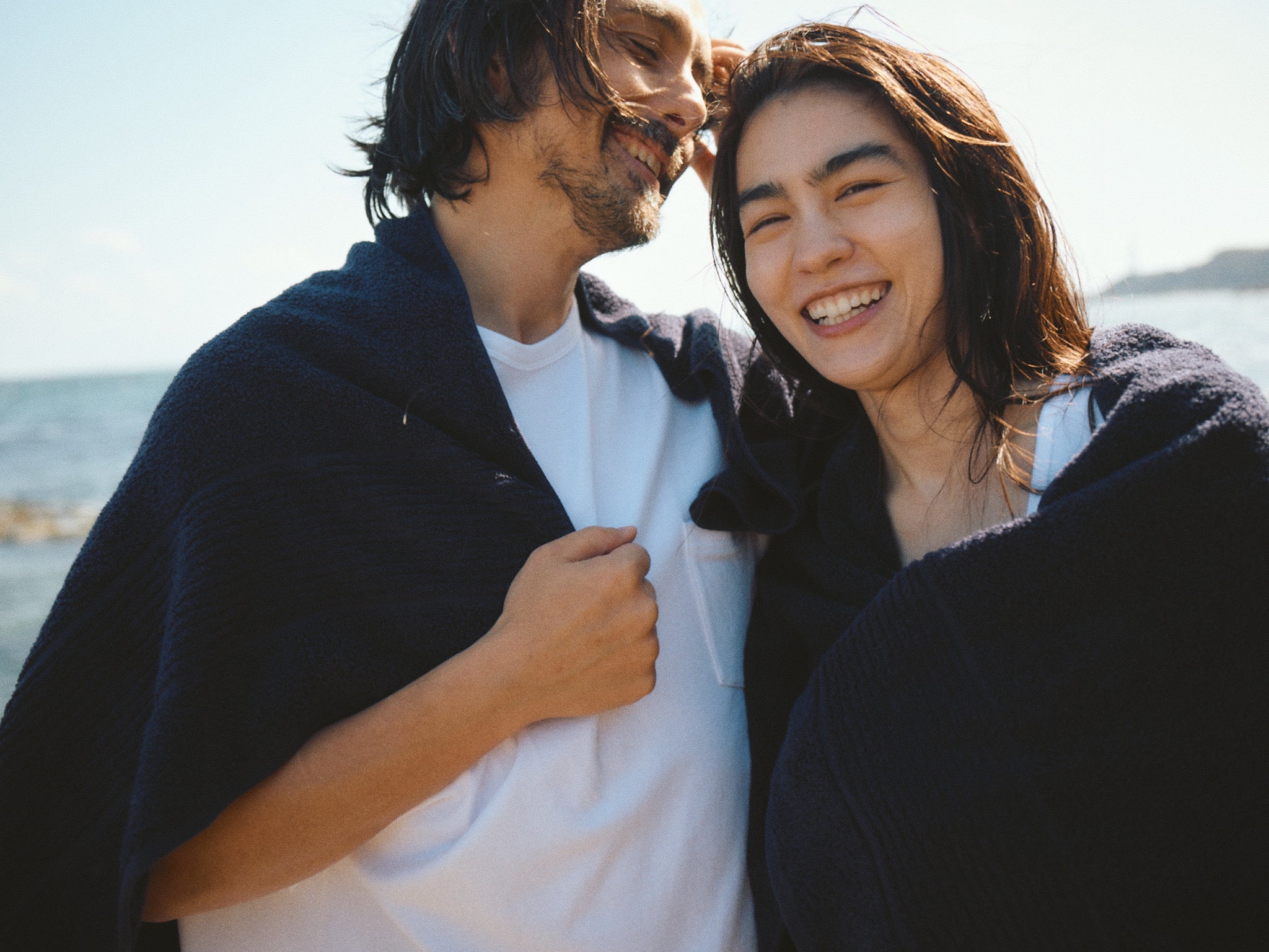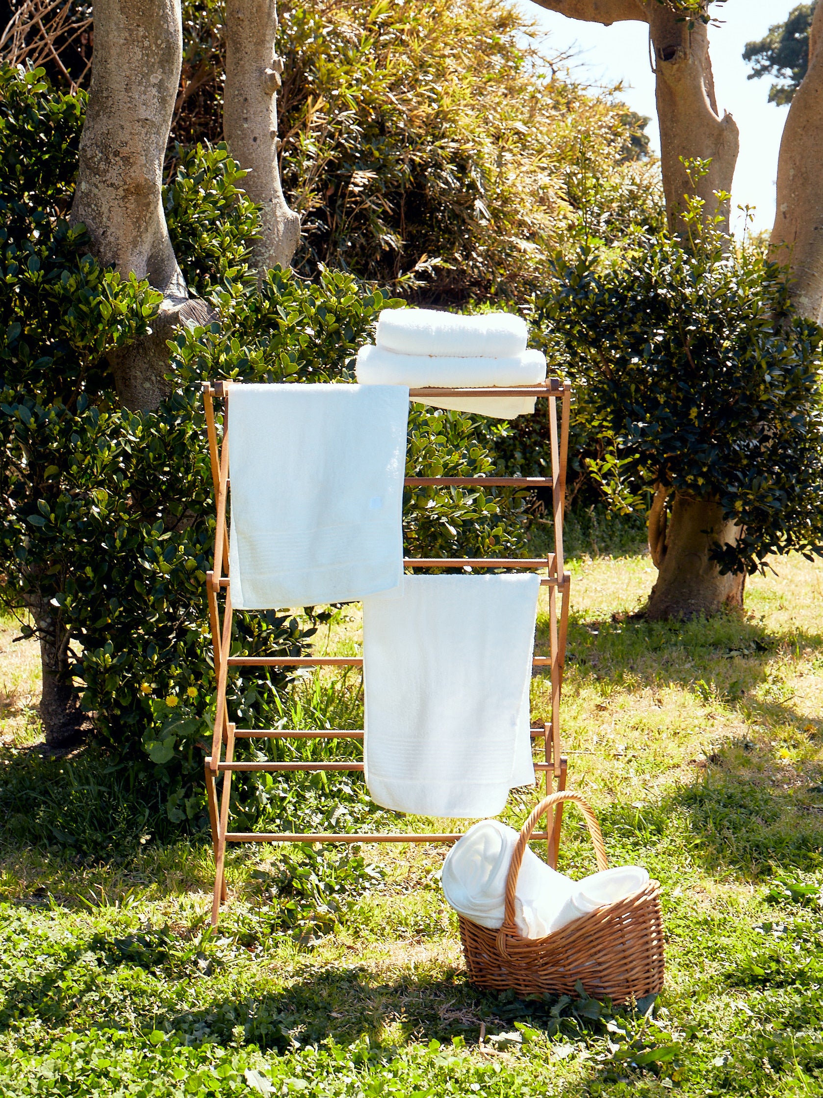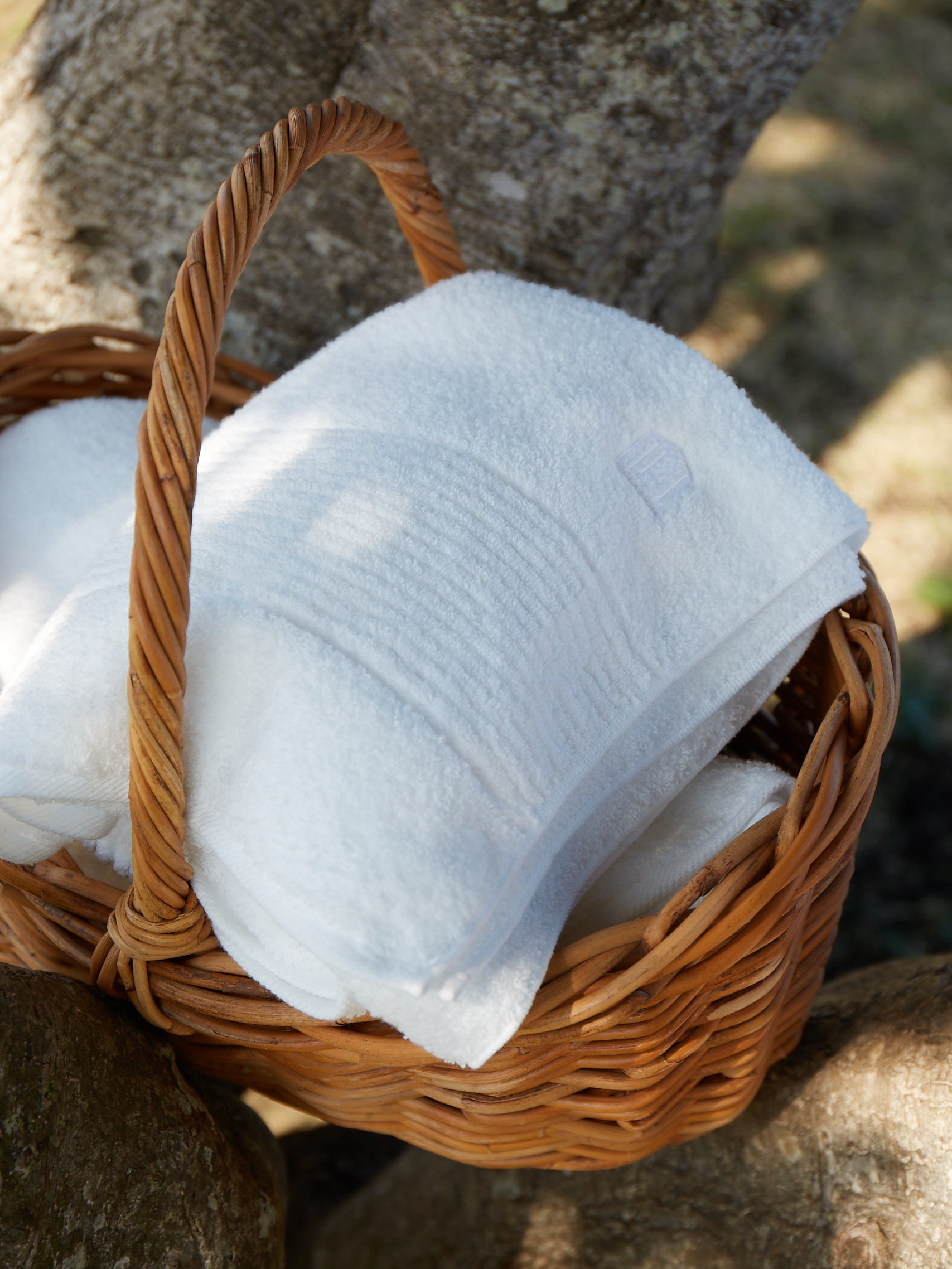 シグネチャーアイテムのタオルは、見た目が美しいだけでなく、思わず顔をうずめたくなる贅沢なボリュームと、驚くほどの軽さが魅力。洗いざらしのコットンの清々しい風合いをそのままに、たっぷり空気を含んだドライ感のある柔らかさは、唯一無二の肌触りです。