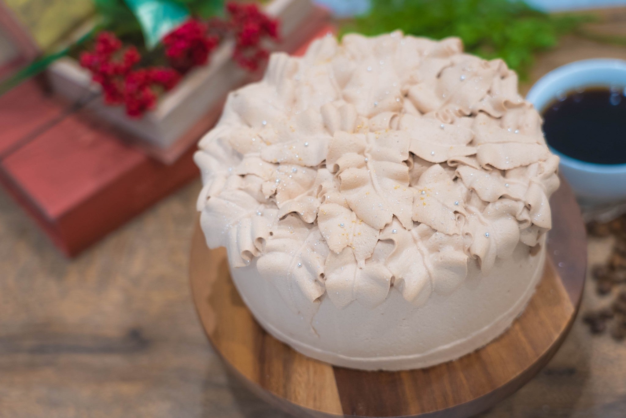 華やかで力強い風味のオーガニックカカオが香るシフォンを、2種類のクーベルチュールチョコレートをブレンドしたチョコレートクリームでデコレーション。