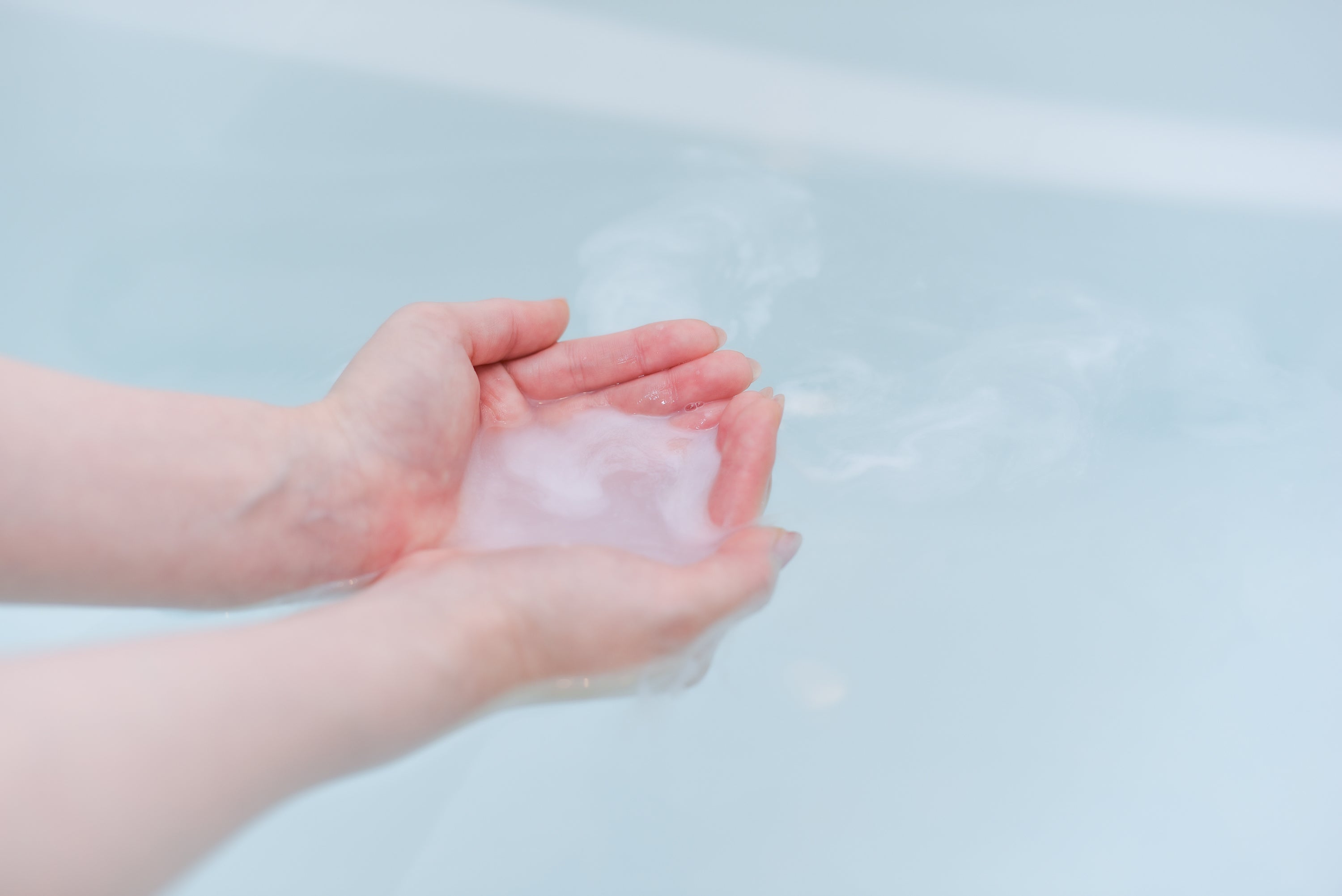 (5) バスタブに注ぐと白濁し、乳白色のお風呂で温泉気分。