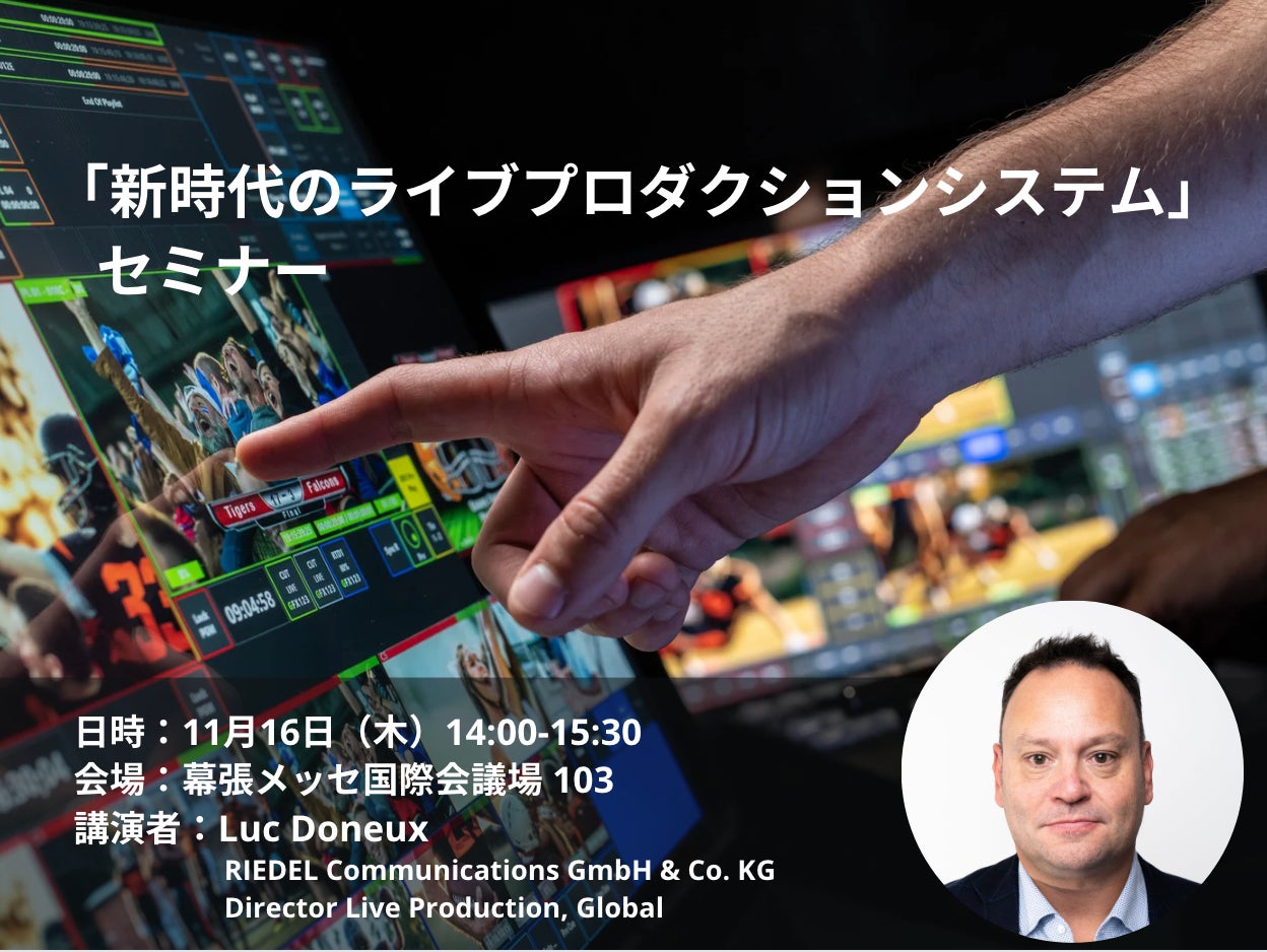 Inter BEE出展者セミナーにおいて、RIEDEL CommunicationsのLiveProduction担当ディレクターのLucDoneuxが新しいLive Productionの形について講演いたします。