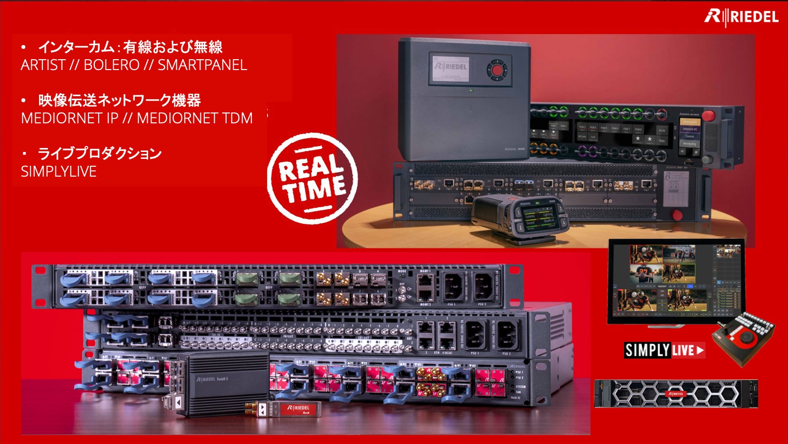 RIEDEL Communicationsは、放送、プロオーディオ、イベント、スポーツ、劇場、セキュリティ⽤途の先駆的なリアル タイムビデオ、オーディオ、データ、コミュニケーションネットワークの設計、製造、販売を⾏っています。同社はまた 、無線やインカムシステム、イベントITソリューション、ファイバーバックボーン、無線信号伝送システムのレンタルサ ービスも提供しており、世界中のあらゆる規模のイベントに容易に対応できるよう拡張しています。RIEDELはグローバル本社をドイツのヴッパータールに置き、ヨーロッパ、 オーストラリア、アジア、アメリカ⼤陸の30拠点で1000⼈以上の従業員を擁しています。