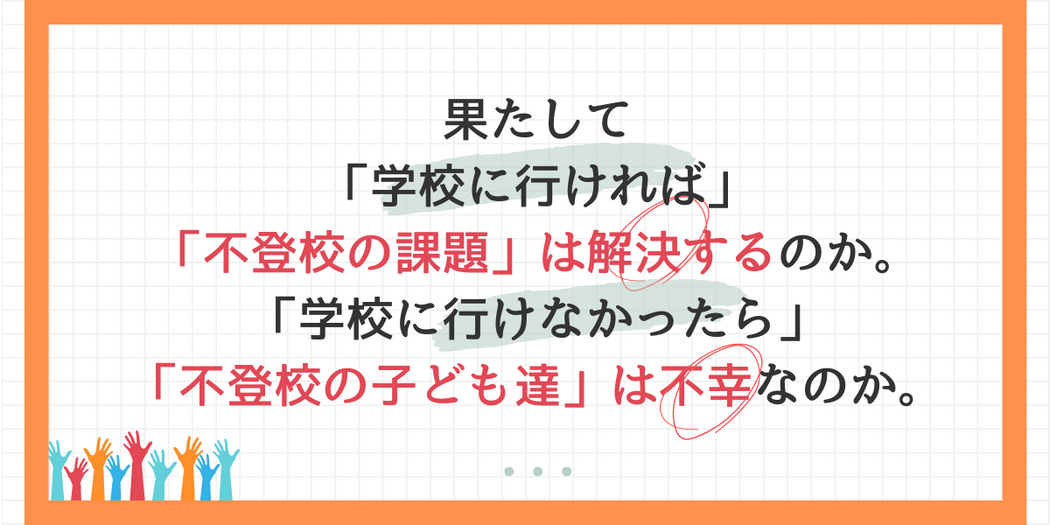 「不登校バンザイ」=「不登校であっても良いではないか」