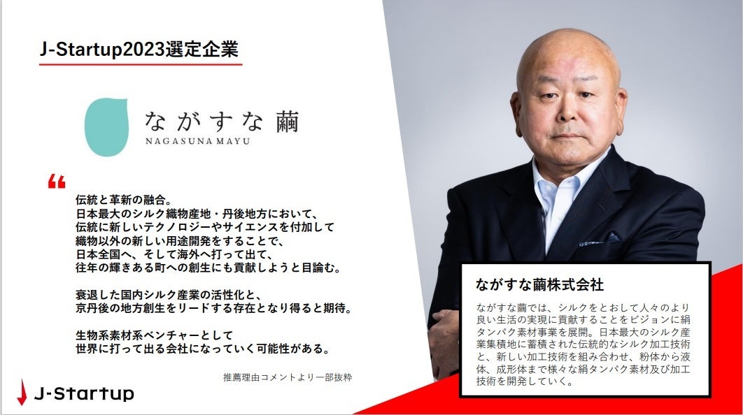 絹タンパク素材のながすな繭、経済産業省の「J-Startup2023」に選定