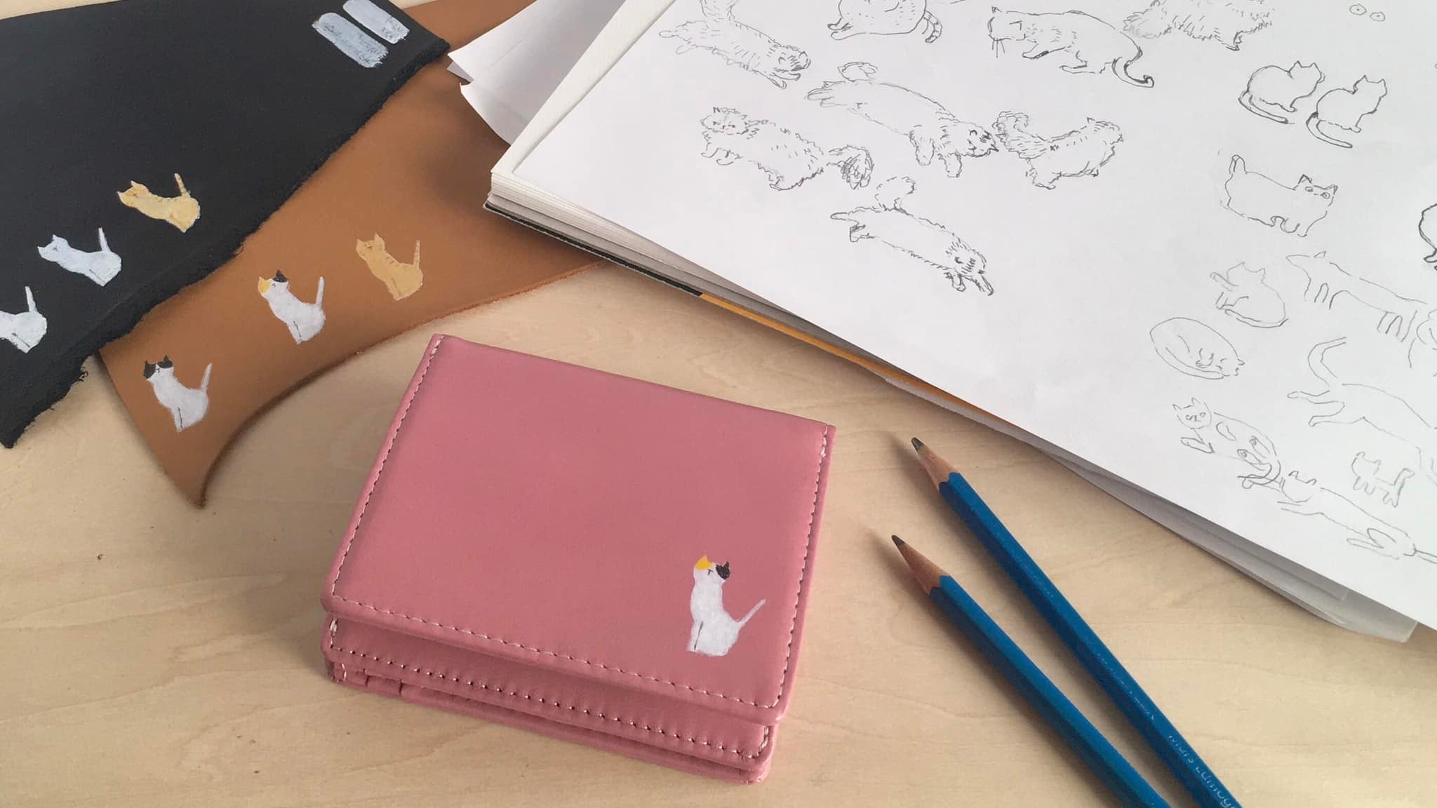 ・プロジェクト名|コンパクトで使用シーンを選ばない!ほっこりかわいい手描き猫の革財布オリエ