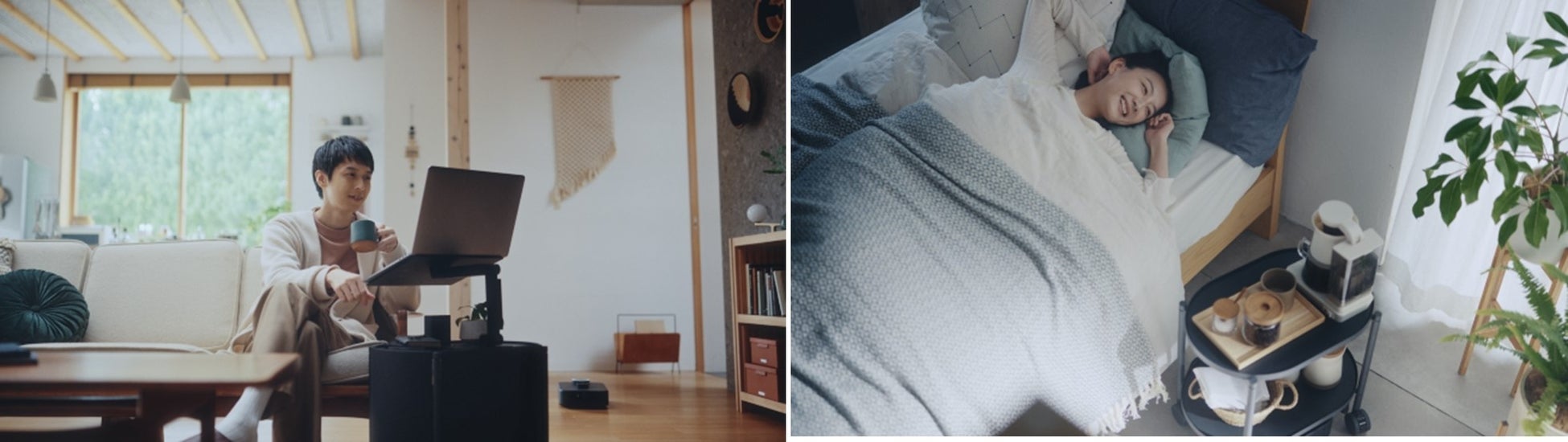カチャカは、AI技術を搭載し、人の指示で家具を動かす家庭用自律移動ロボット。専用のキャスター付き収納「カチャカシェルフ」とドッキングすることで、指定の場所までモノを運ぶことが可能。これまで難しいとされてきた、環境変化の激しい居住空間での柔軟な自律移動を実現。「カチャカ」と「カチャカシェルフ」により、人が家具に合わせて動くのではなく、人に合わせて家具が動くというスマートファニチャーのある生活を提供します。