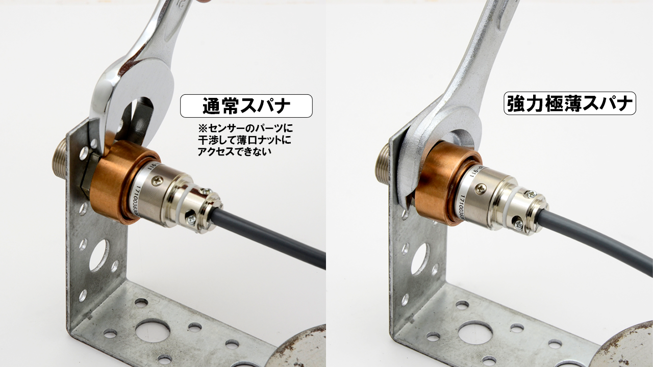 強力極薄スパナは振動源の近くにあるセンサーナットを強力に締め付ける為に開発されました。