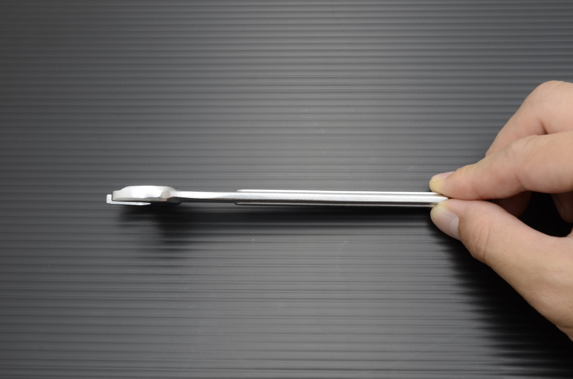 また、強力極薄スパナは柄の部分が分厚いので、力を入れても手が痛くなりにくいという特徴もございます。