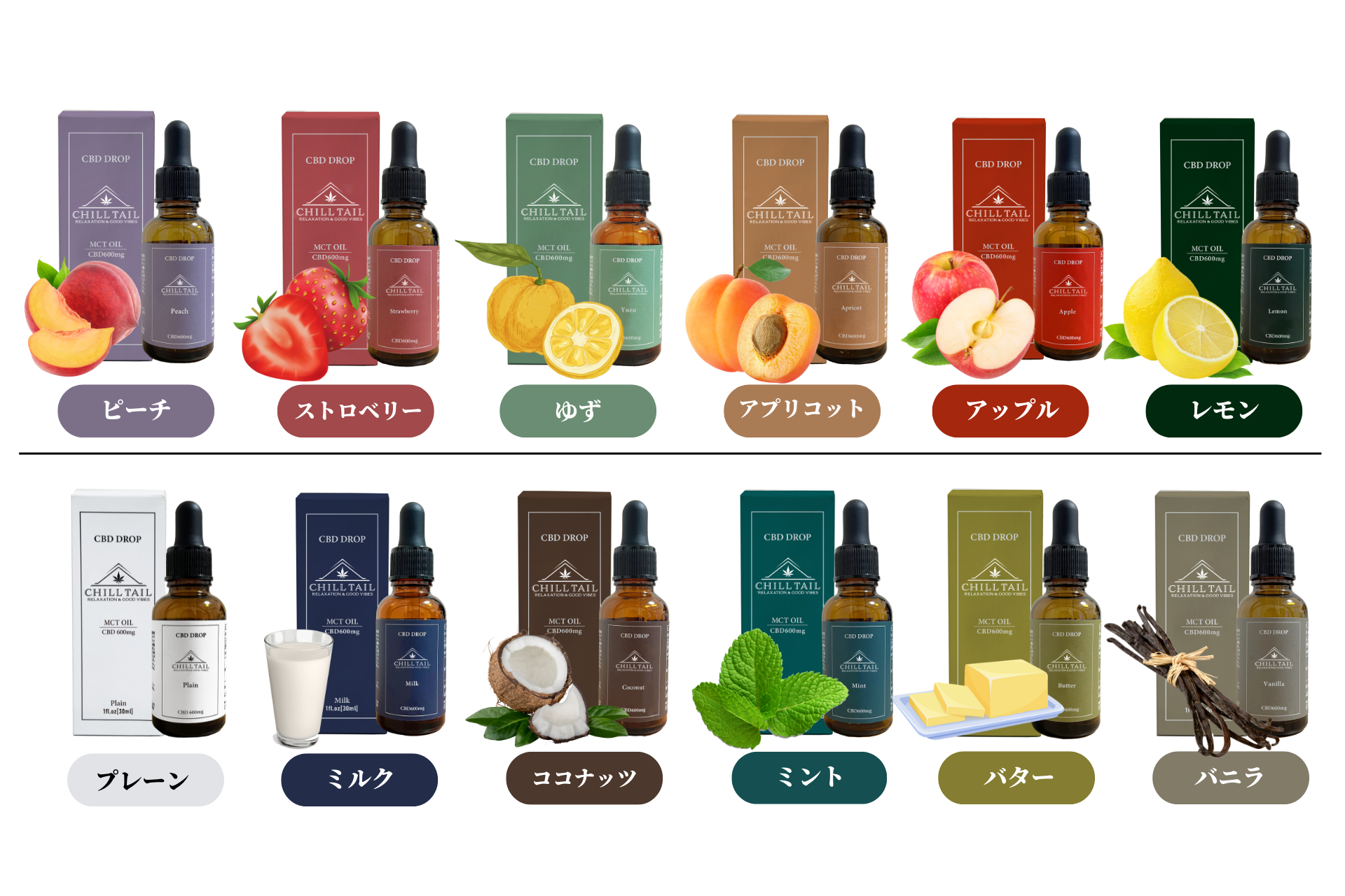 コーヒー、紅茶、ビール等のアルコール、スムージー、サラダetc…にCBDオイルを加えることで、日々の平穏や次の日への活力、自分へのご褒美など、日常のルーティンに取り入れることで、より充実した生活を送れるよう想いを込めました。