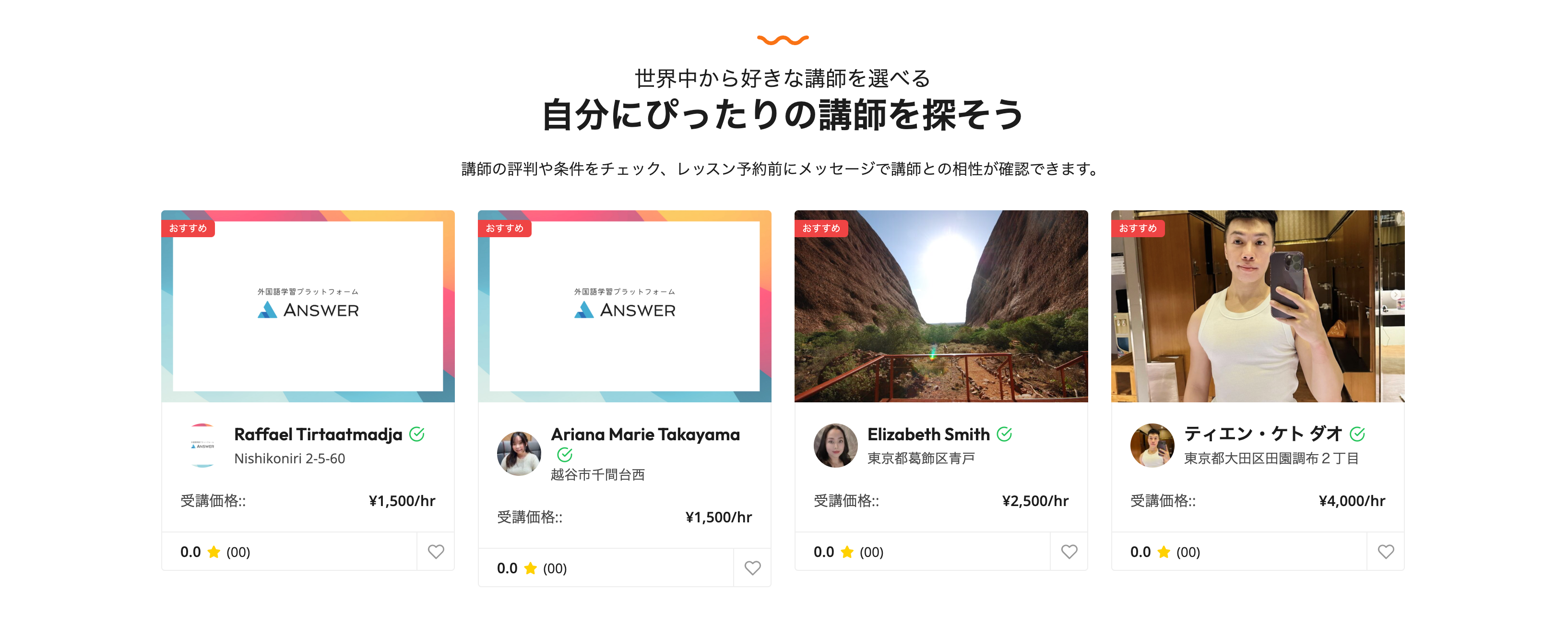 Answerのウェブサイトは、ユーザーフレンドリーなインターフェイスになっています。講師のプロフィールを簡単に見ることができ、マッチング機能も充実しています。自分に合った講師を探すのに時間をかけることなく、簡単に見つけることができます。