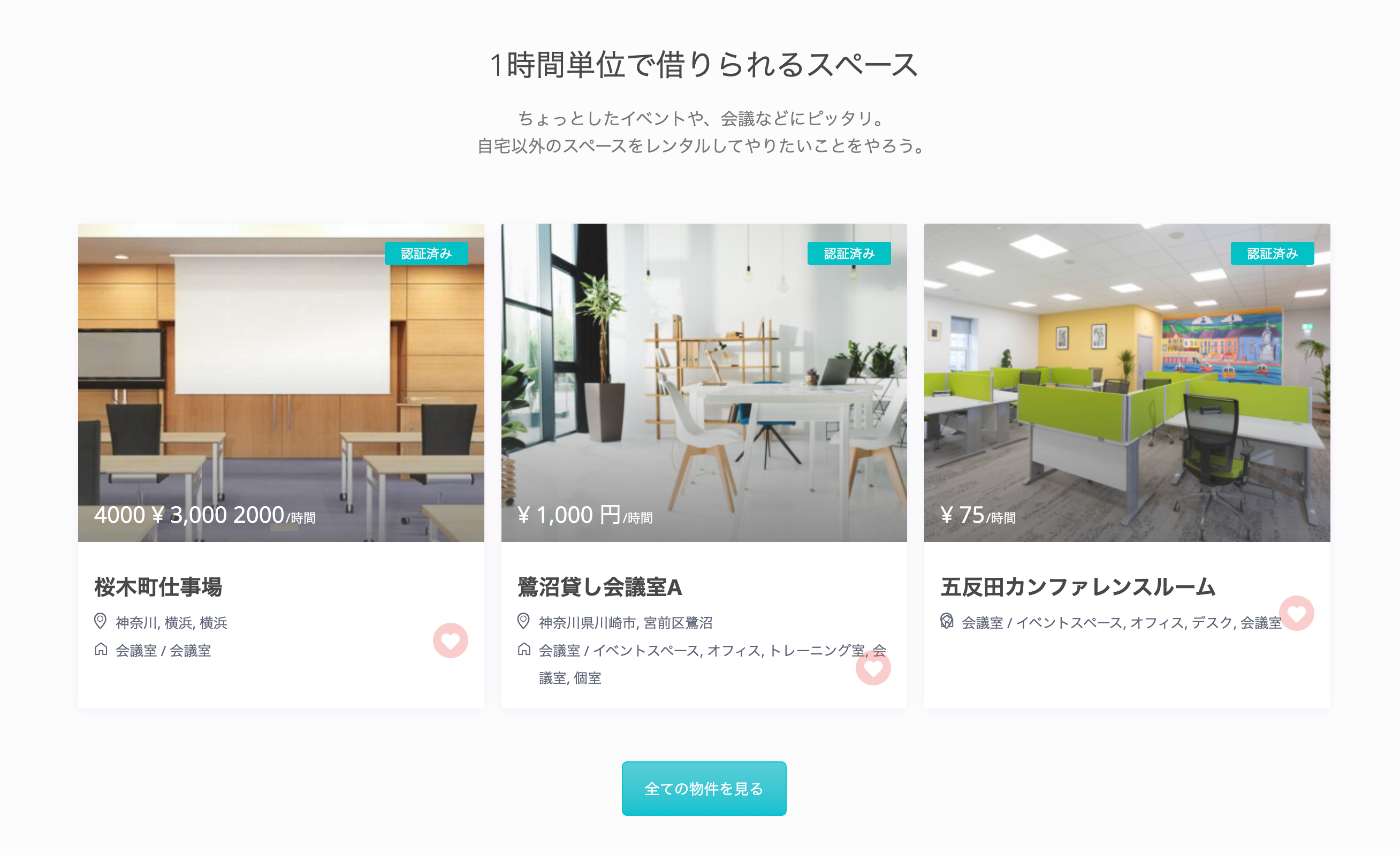 2)「SpaceRental」では、会議,パーティーなどのためのスペースを簡単に検索・予約できるだけでなく、ご自身の空いているスペースを貸し出すこともできます。従来はホスト側手数料負担(平均30%以上)が大きかった手数料を15%以下に抑え価格破壊に挑んでいます。