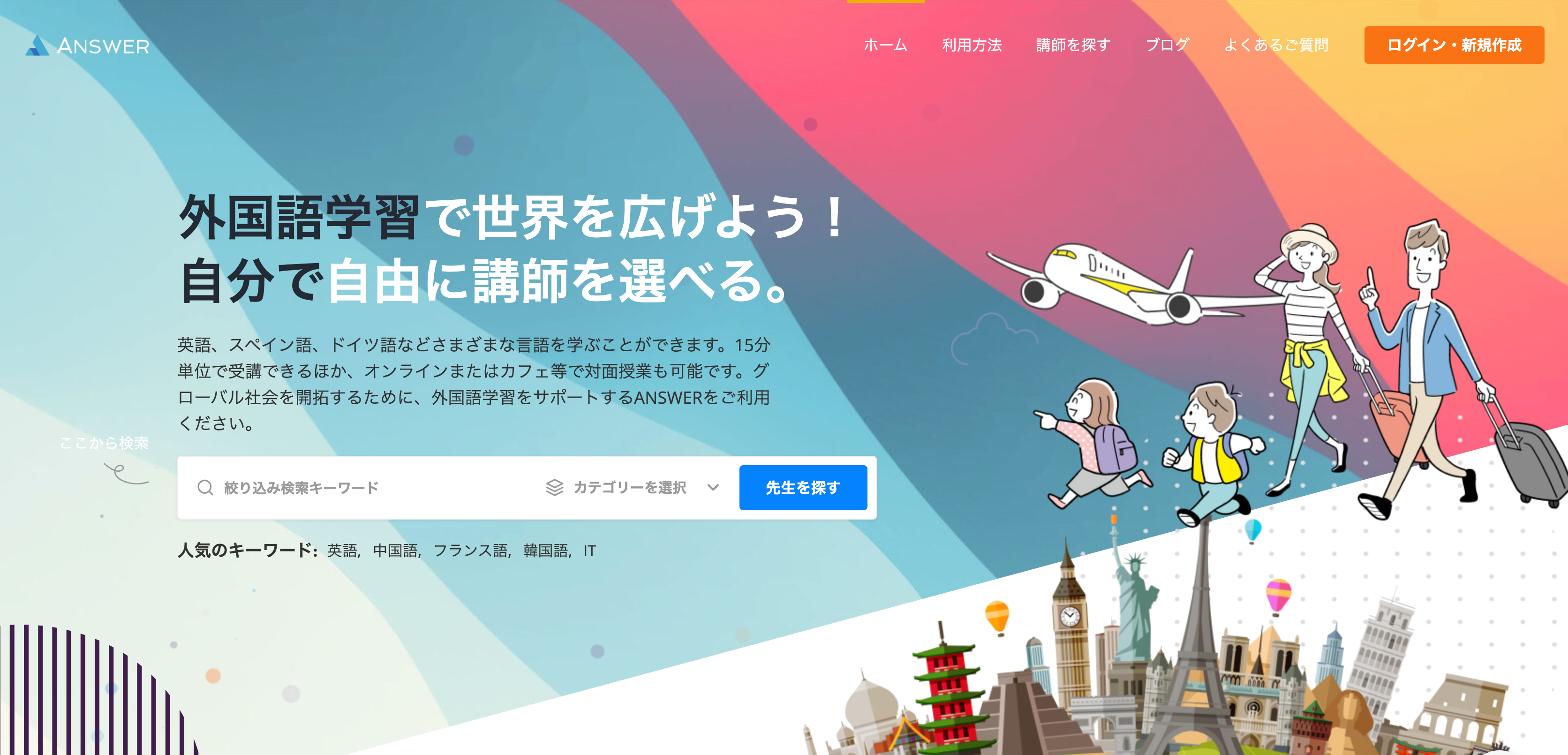 Answerは、手軽でお得な語学学習マッチングサイトです。