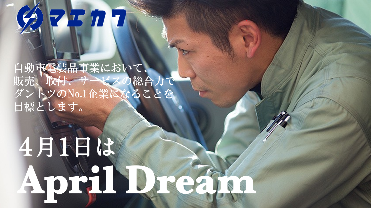 株式会社マエカワは、自動車電装業界において、販売、取付、サービスの総合力でダントツの業界No.1企業を目指します。