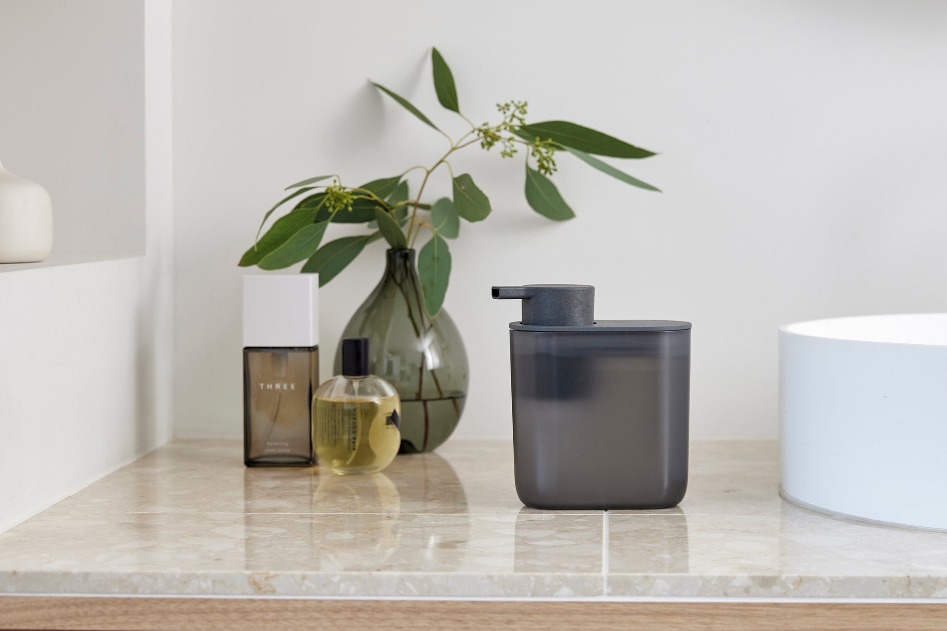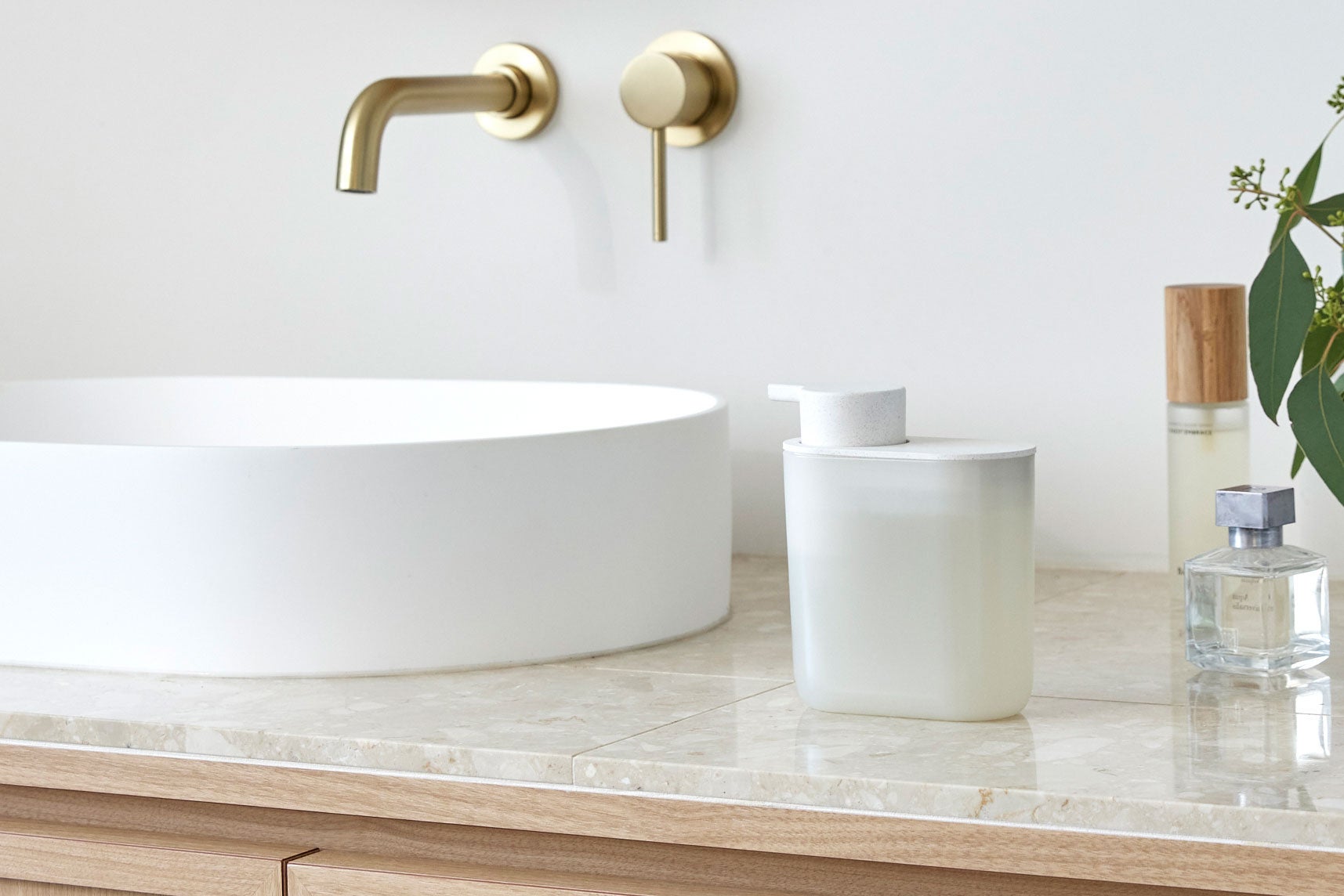 クリーミーな泡が出る優しいフォルムのソープディスペンサー。詰め替える時、ポンプを取り外す必要がなく、置き場に悩む心配がありません。日々のちょっとした煩わしさをそっと解消します。柔らかなフォルムとこだわった使い心地・質感は手を洗う時に心地よいひとときを作り出します。