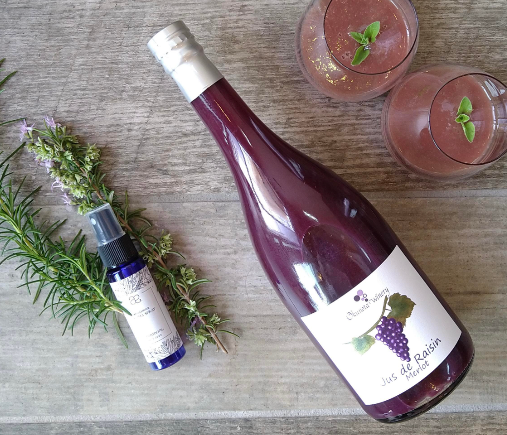 ・特徴:ワイン用品種「メルロ」100%使った、房ごと搾り上げた野性味あふれる味わいのジュース