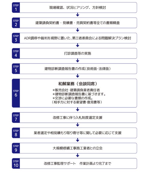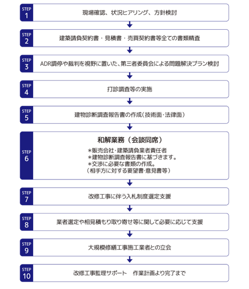 マンション外壁タイル剥離問題解決支援センターでは、この様な事案に対応するため、多くの解決事案の経験を基に、問題解決に精通した一級建築士・弁護士・マンション管理士等の専門家チームを組んで問題解決の支援を行っております。同時に、個人・中小企業の不動産取引問題や建築問題等を解決するために設立されたNPO日本住宅性能検査協会「建築・不動産取引問題に関する第三者委員会」では、事案ごとに専門委員を招集し、第三者委員会を設置します。