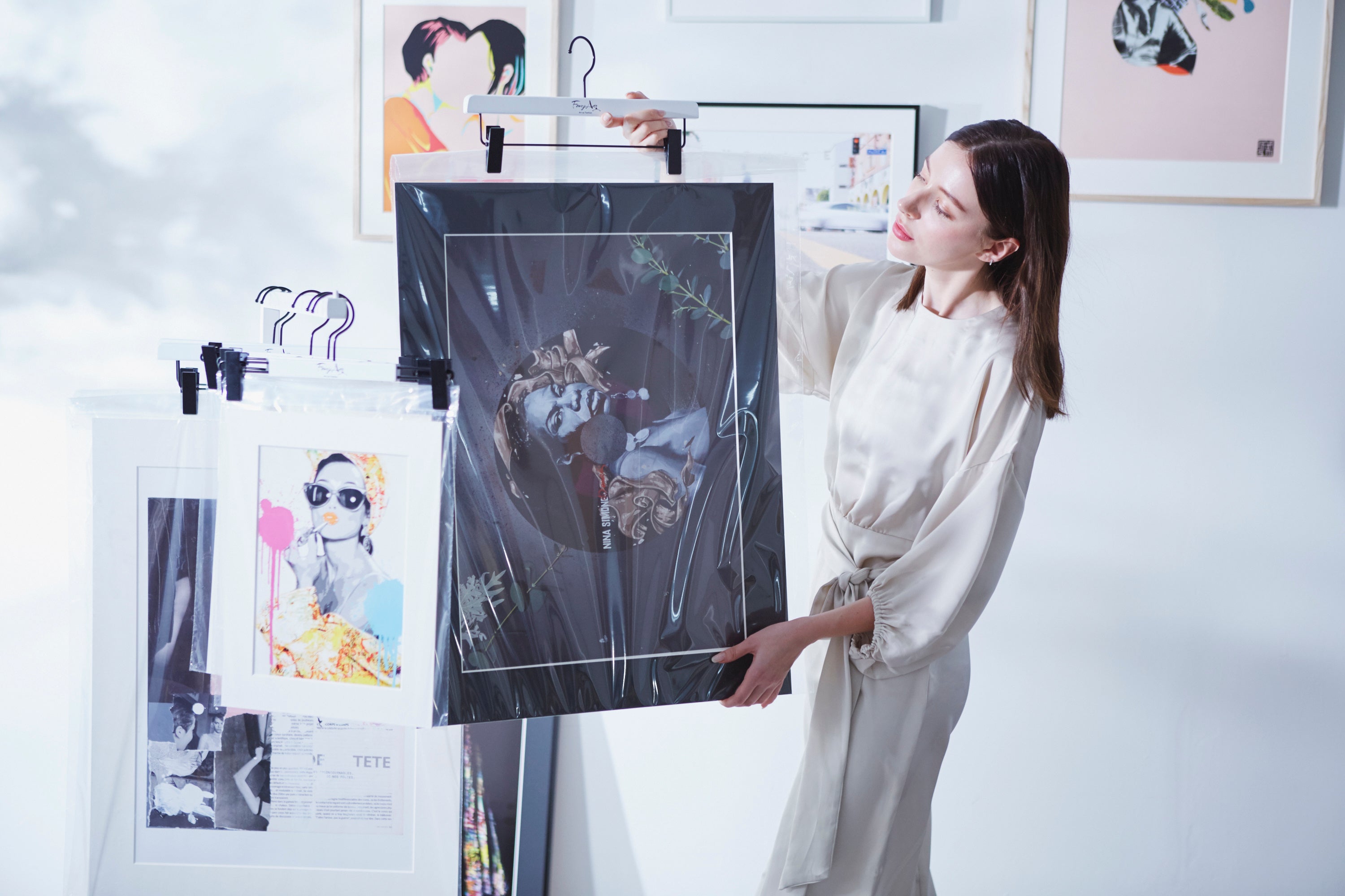 そこで、私達は洋服をしまう際に使用する”ハンガー”に着目。2回目以降に届くアートには専用のハンガーをセットでお届け。一旦、飾る事がなくなった前のアートをハンガーにかけて洋服と一緒にかけてもらう。