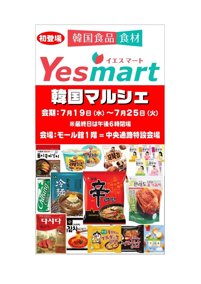 そのYesmartマルイシティ横浜が東戸塚駅直結の西武戸塚で7月19日(水)から25日(火)までの7日間、韓国マルシェを開催します。