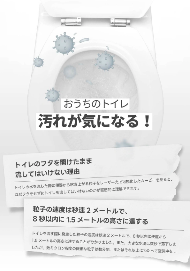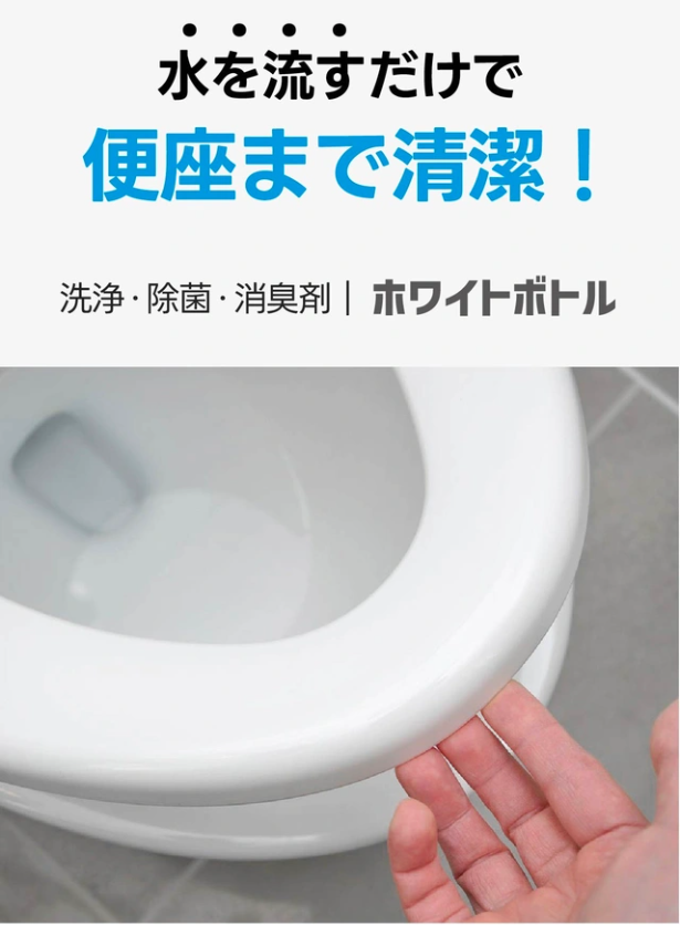 トイレの使用時に感じる臭いや汚れ、気になる衛星面での不安を解消して清潔で快適なトイレ環境を提供します。ホワイトボトルで簡単に不快な経験を解決し、家族の健康や衛生にも貢献します。