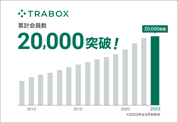 データとデジタル技術を活用し、物流の仕組みを未来へ加速させる事を目指すトラボックス株式会社(本社:東京都渋谷区、代表取締役社長:村田 聡)は、求荷求車サービスにおいて、2023年3月末までの集計で運送会社の累計会員数が20,000を突破いたしましたので、お知らせします。