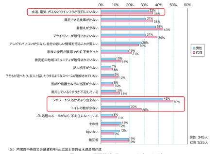 また「避難所生活で困ったこと」を聞いた内閣府のアンケート結果でも、水に関する問題が上位を占めています。